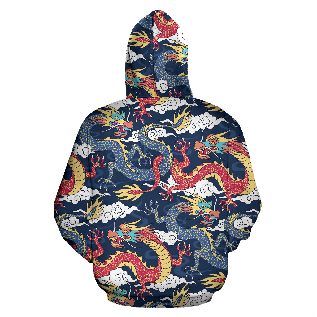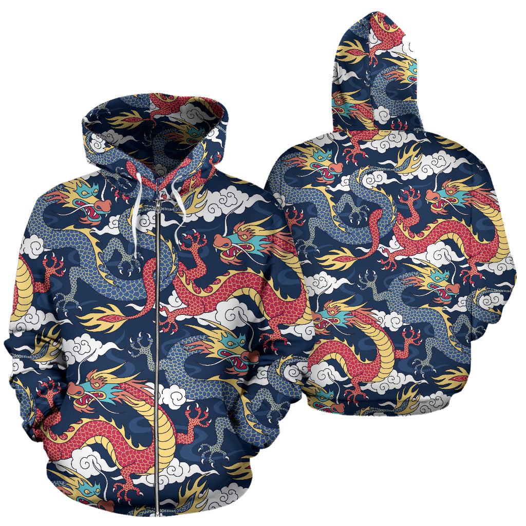 Blue Red Dragon Cloud Pattern Zip Up Hoodie