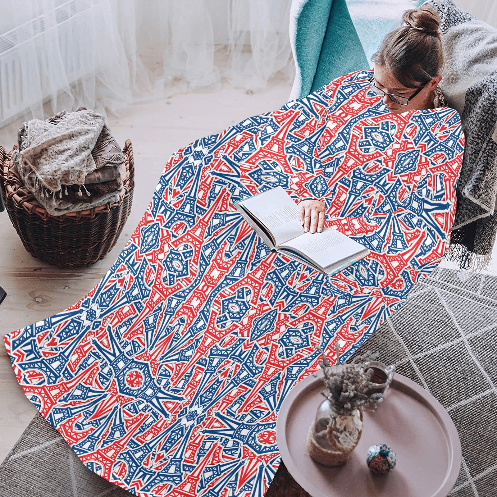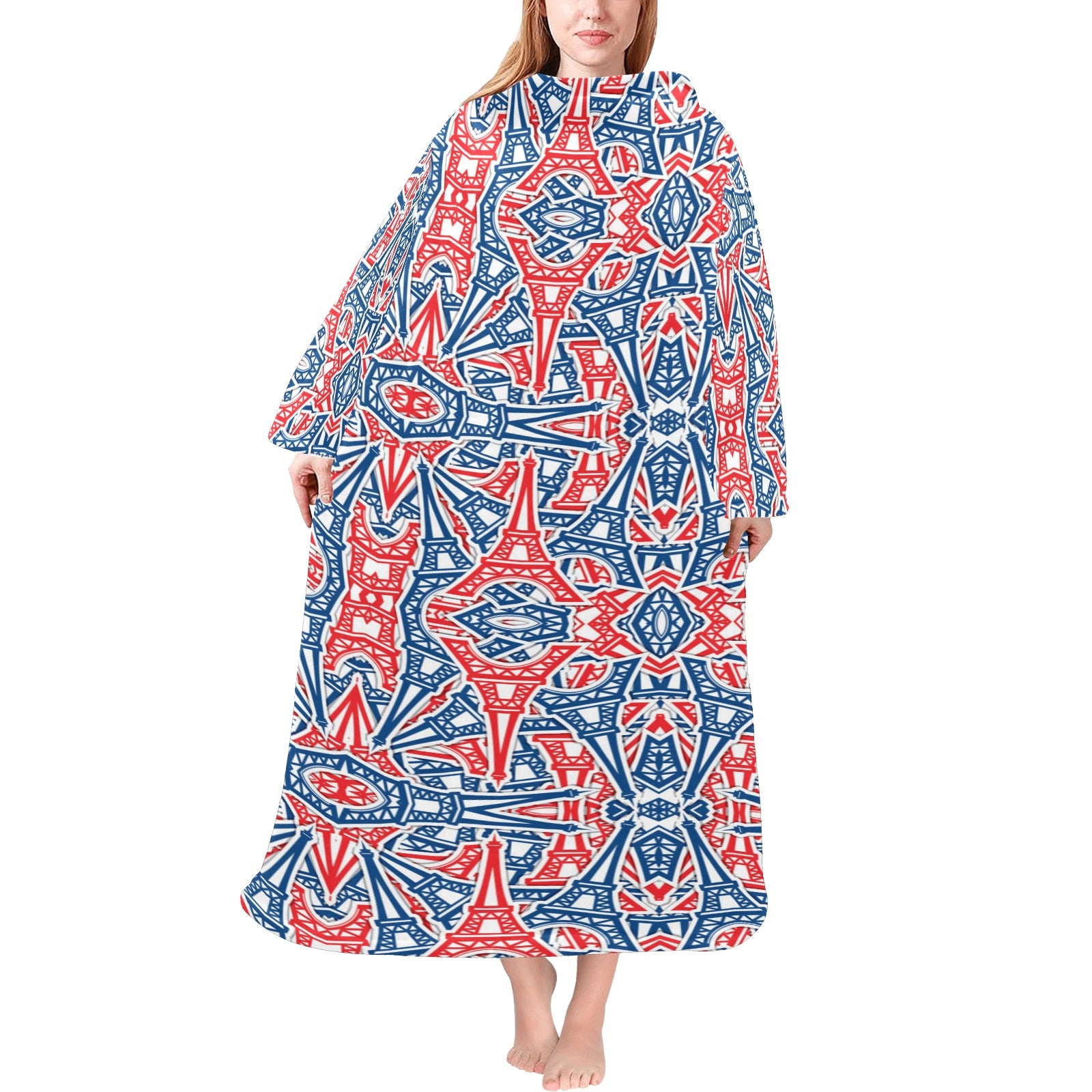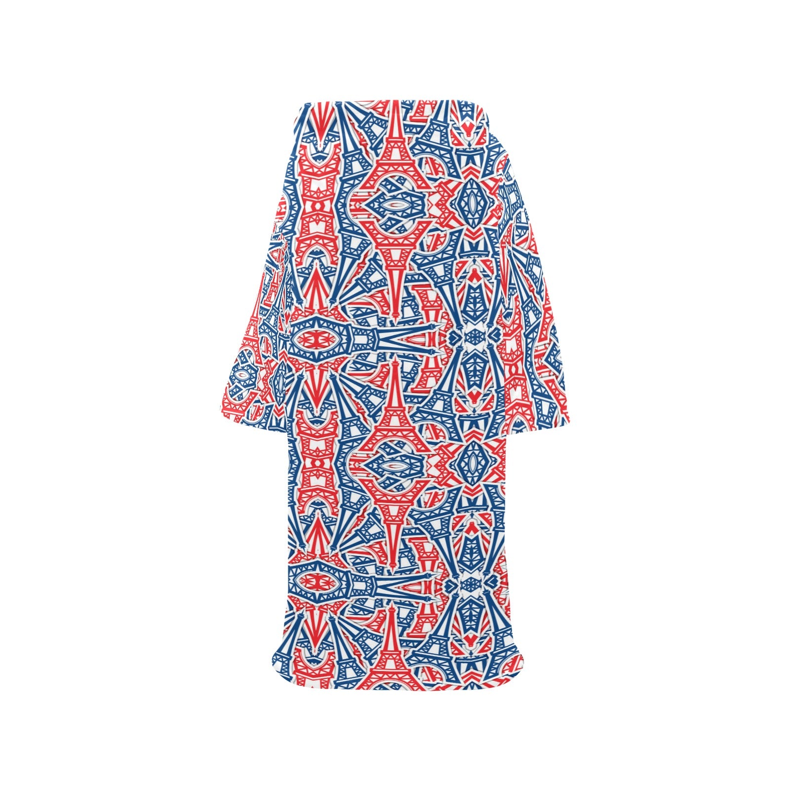 Blue Red Eiffel Tower Pattern Print Design 02 Blanket Robe with Sleeves