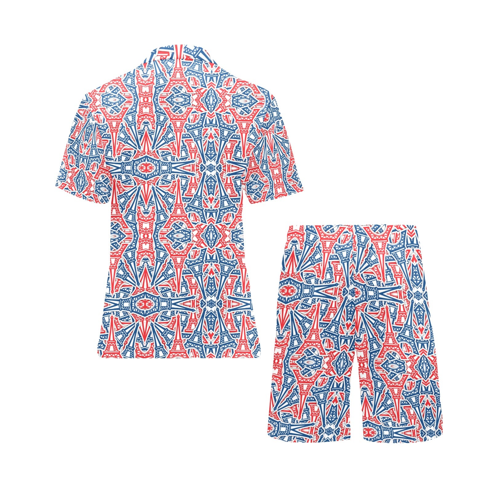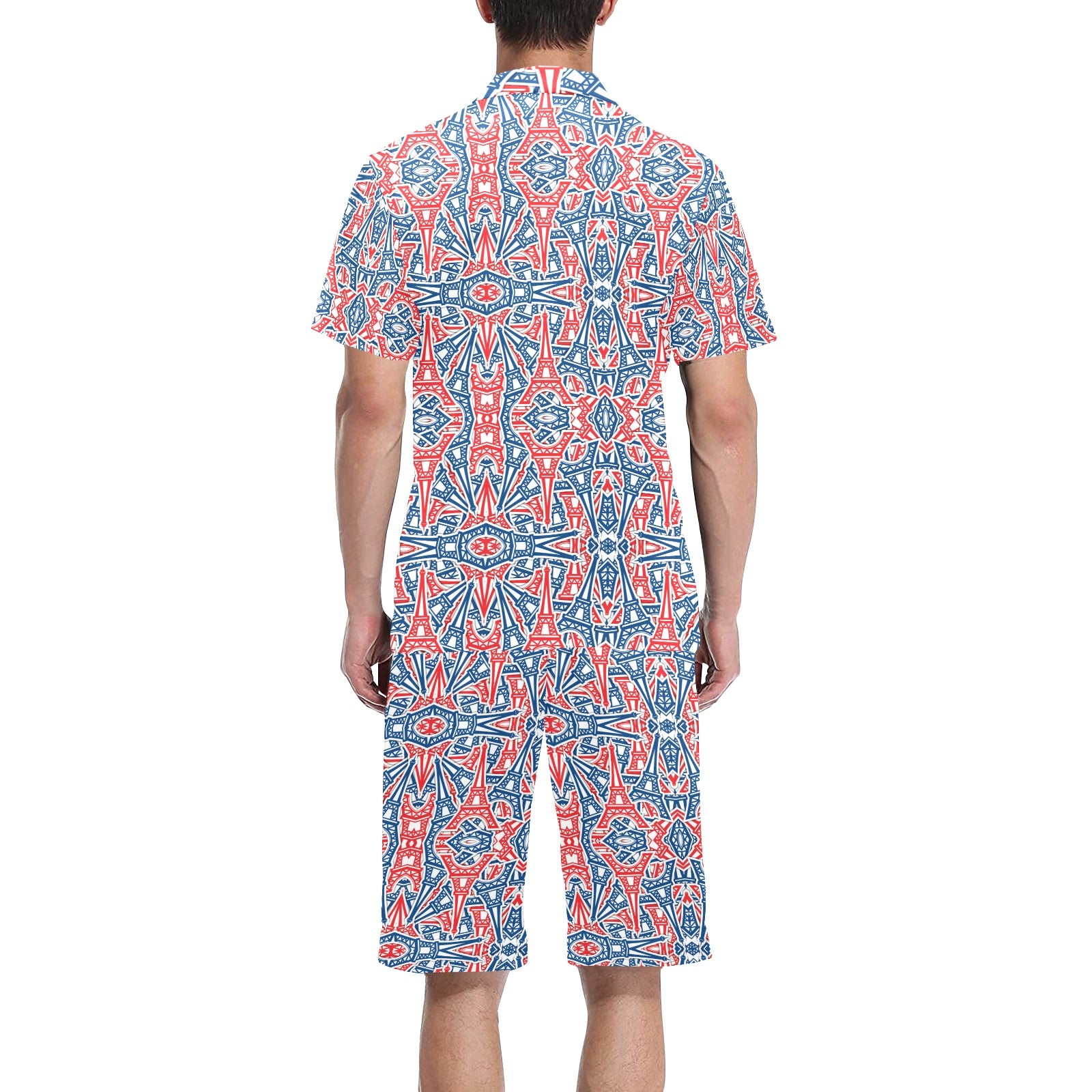 Blue Red Eiffel Tower Pattern Print Design 02 Men's V-Neck Short Pajama Set