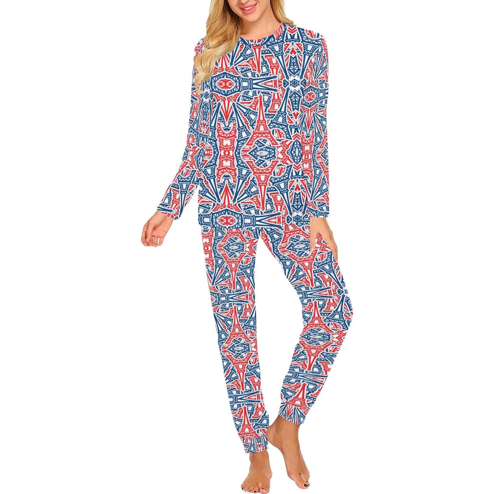 Blue Red Eiffel Tower Pattern Print Design 02 Women's All Over Print Pajama Set