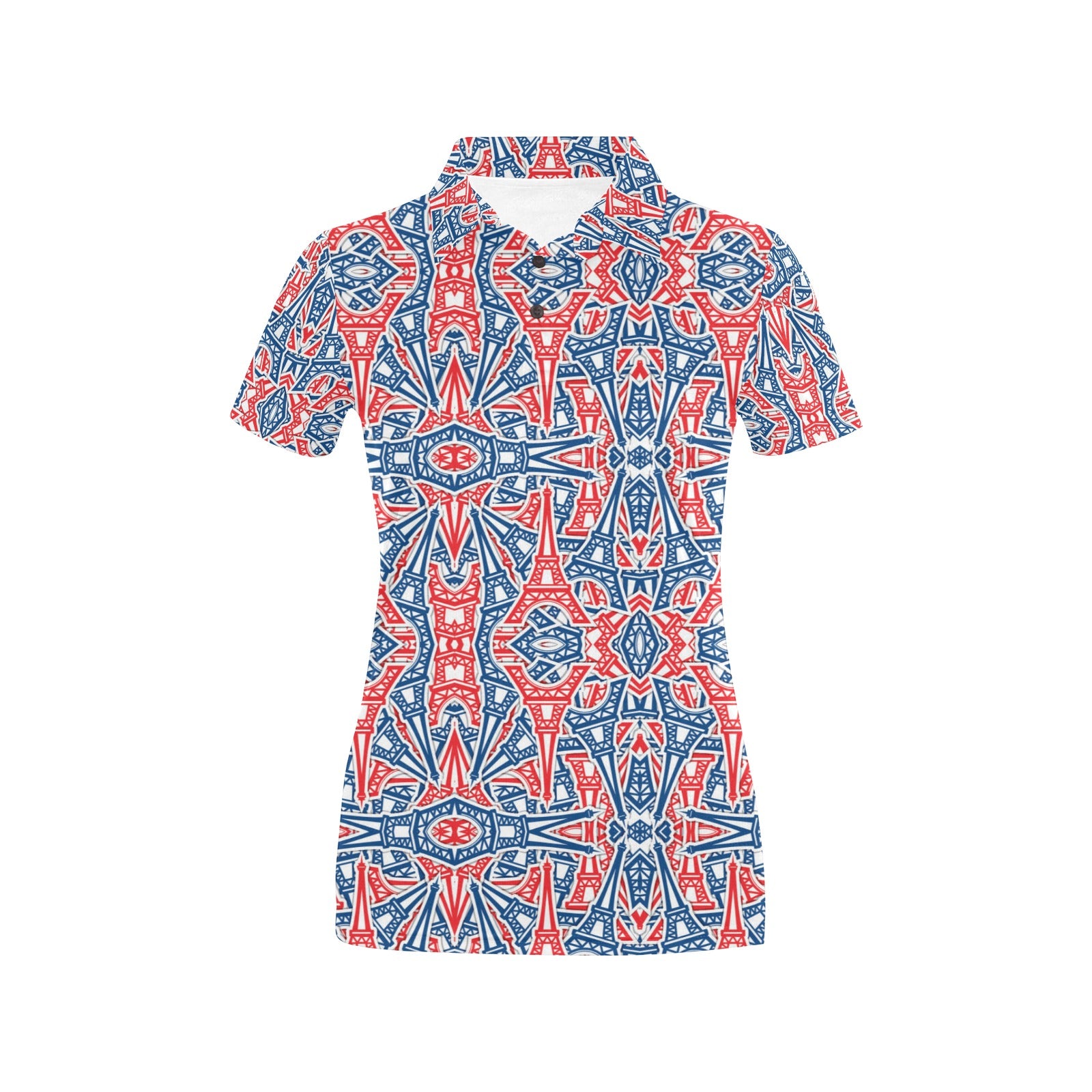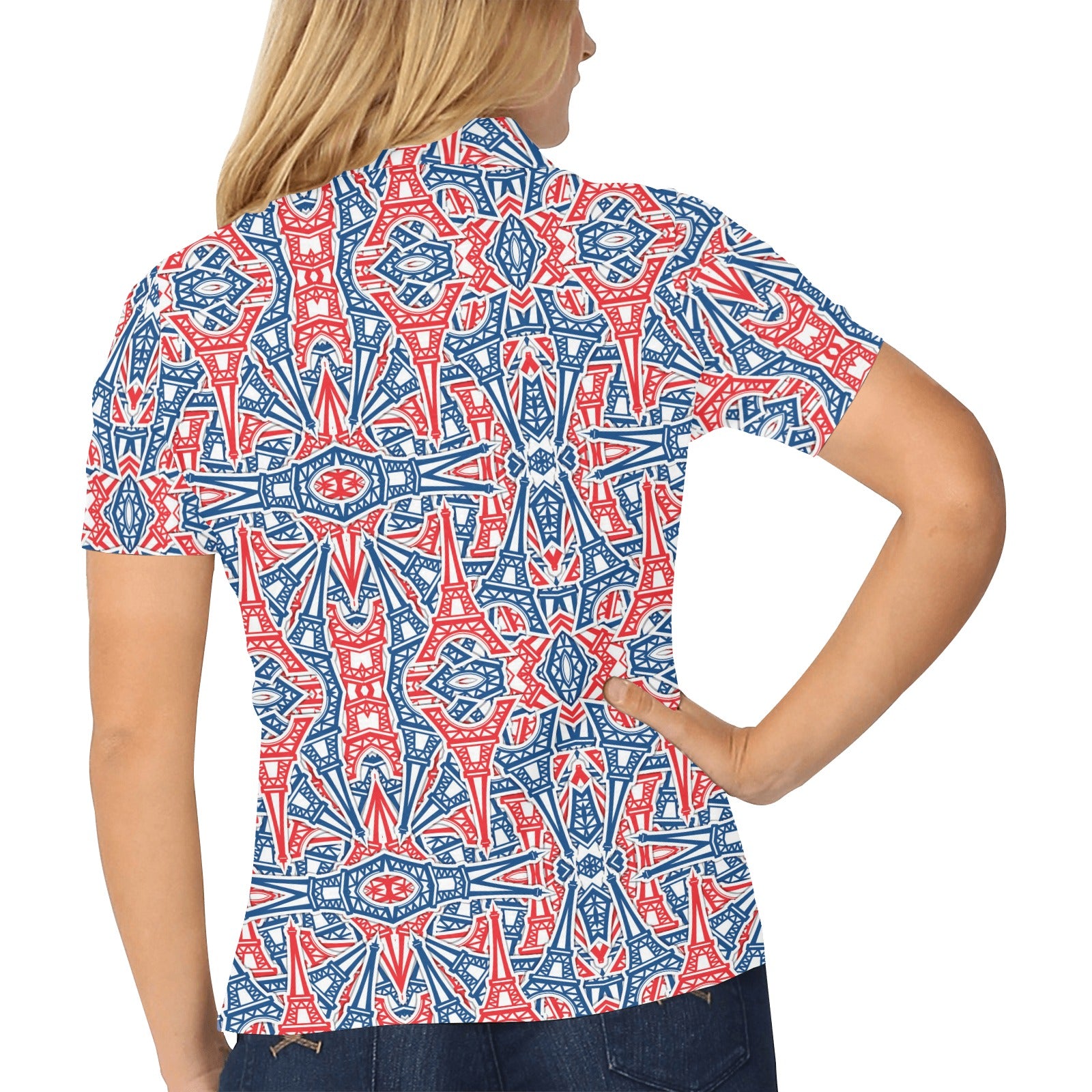 Blue Red Eiffel Tower Pattern Print Design 02 Women's All Over Print Polo Shirt