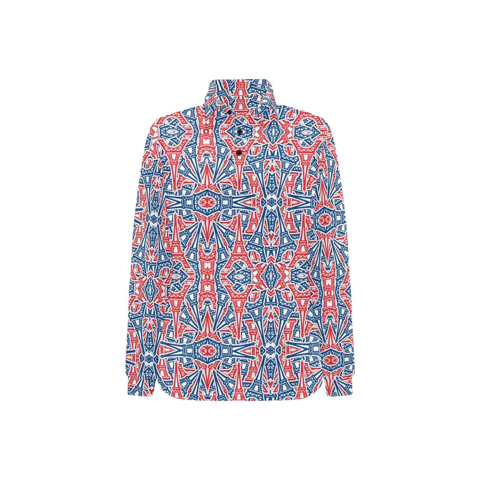 Blue Red Eiffel Tower Pattern Print Design 02 Women's Long Sleeve Polo Shirt
