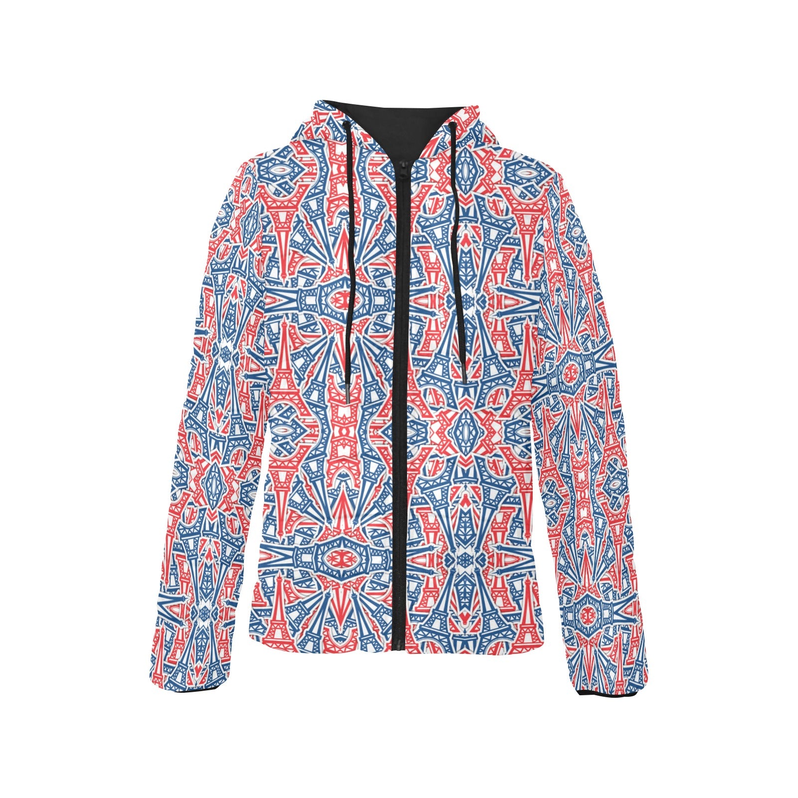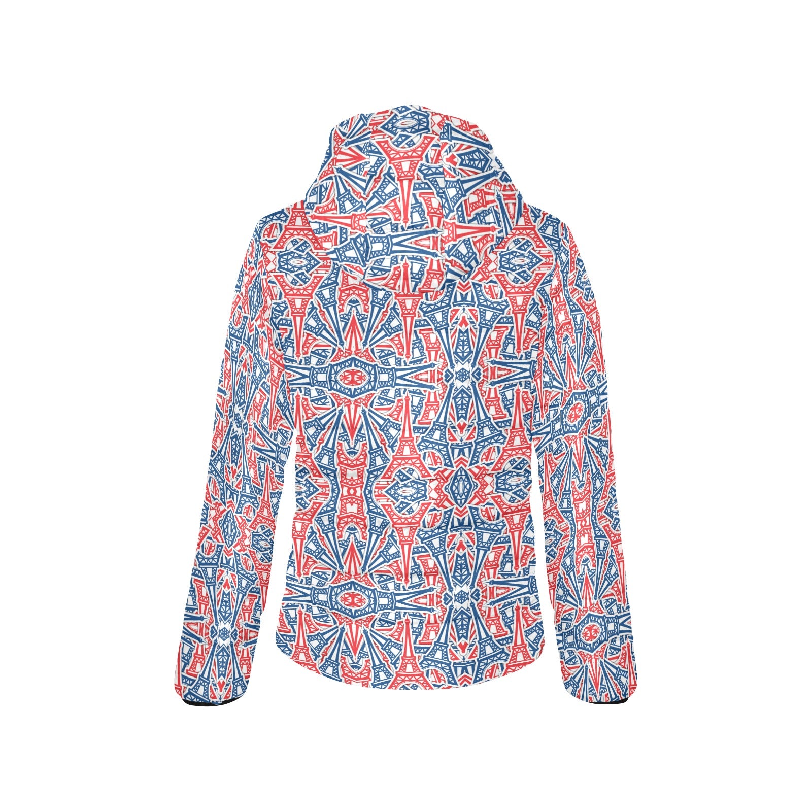 Blue Red Eiffel Tower Pattern Print Design 02 Women's Padded Hooded Jacket