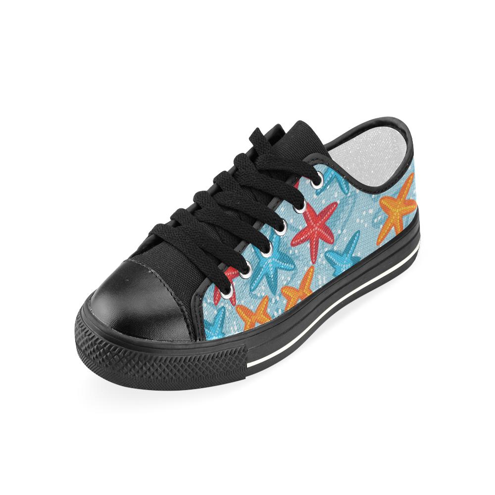 Blue red orange starfish pattern Kids' Boys' Girls' Low Top Canvas Shoes Black Fulfilled In US