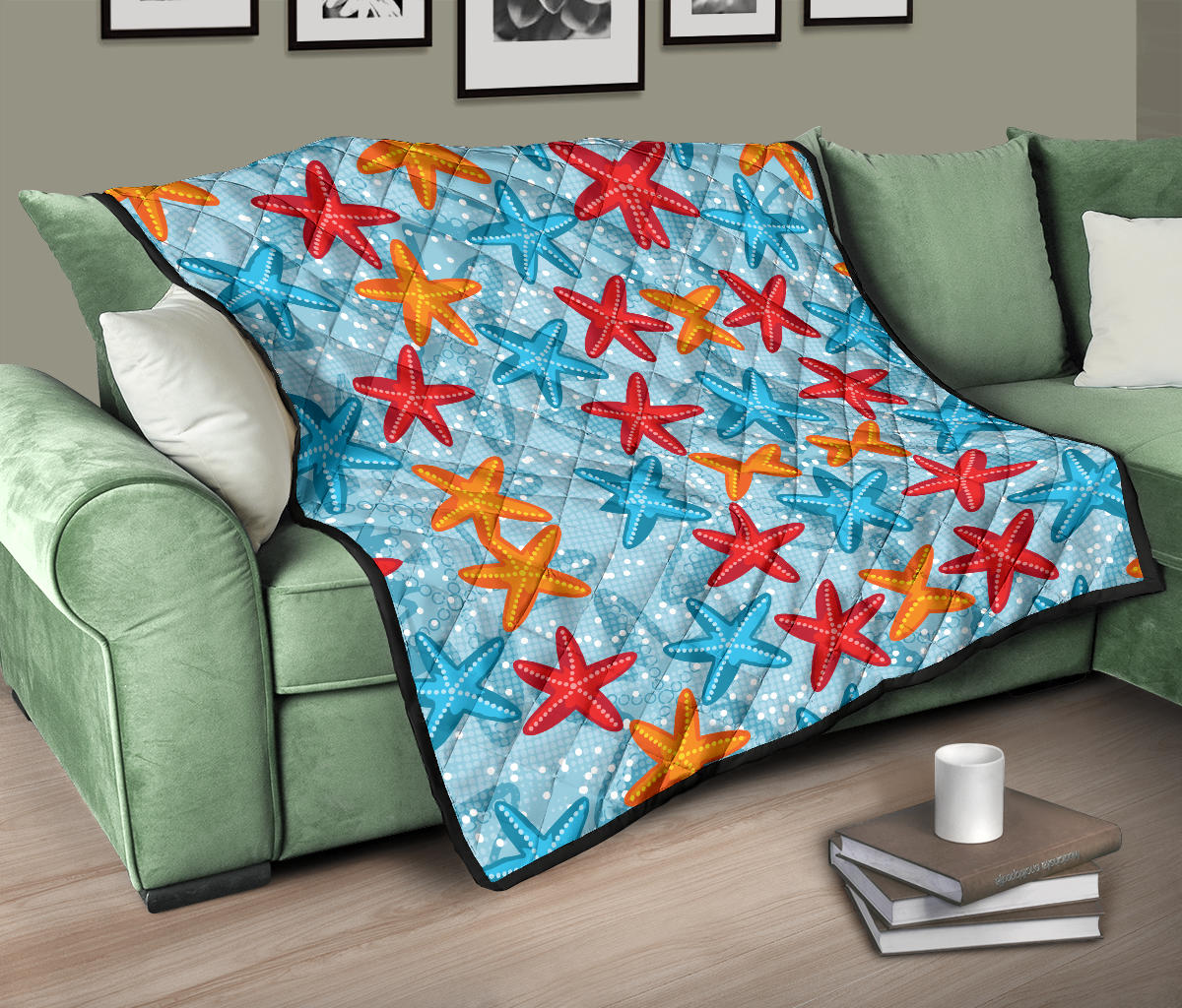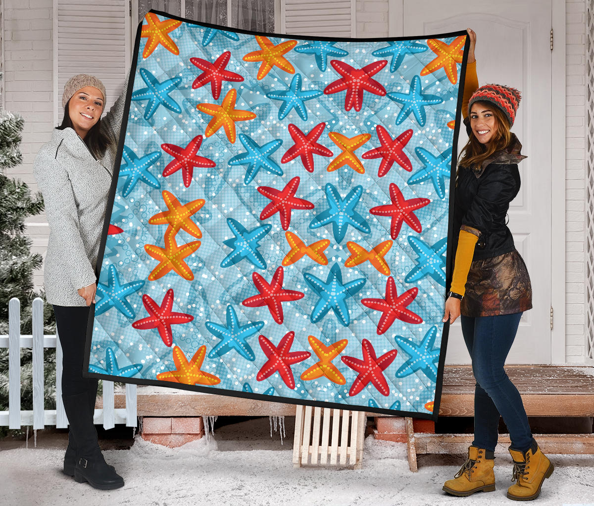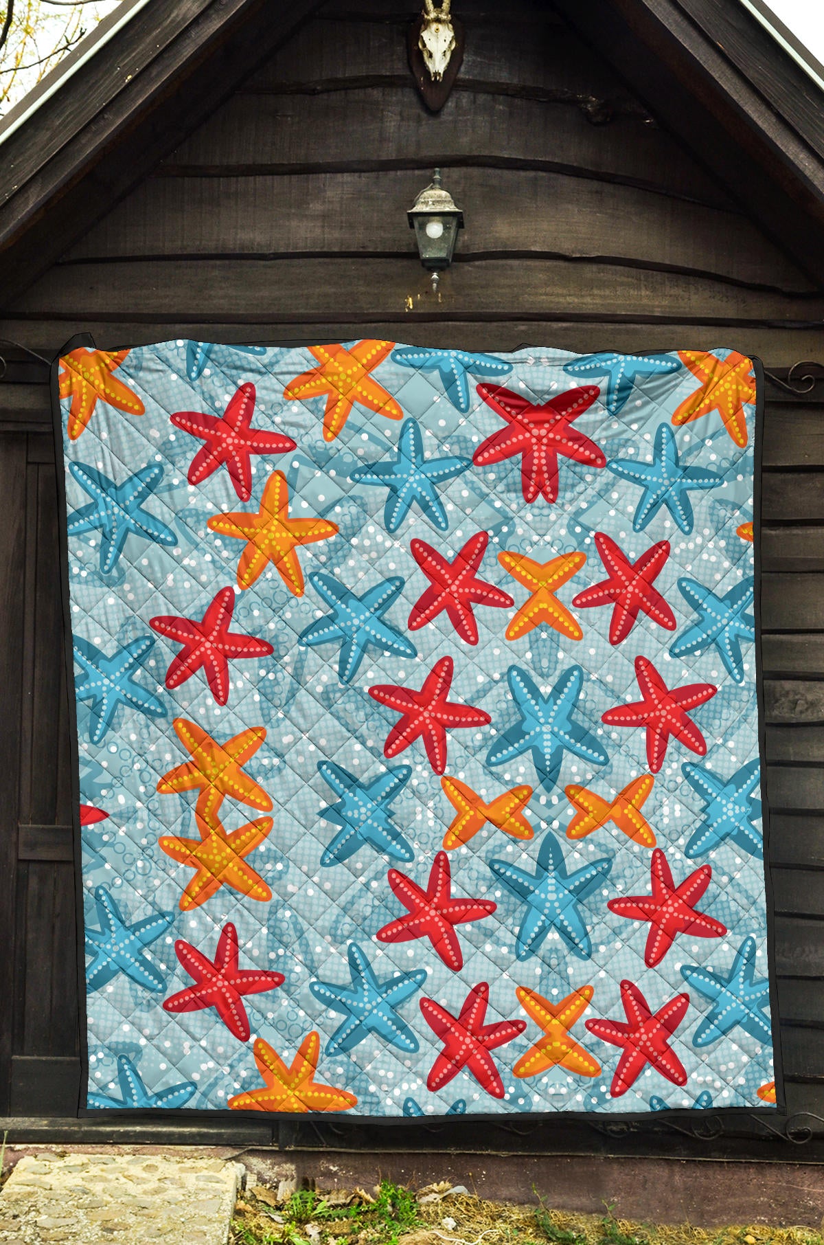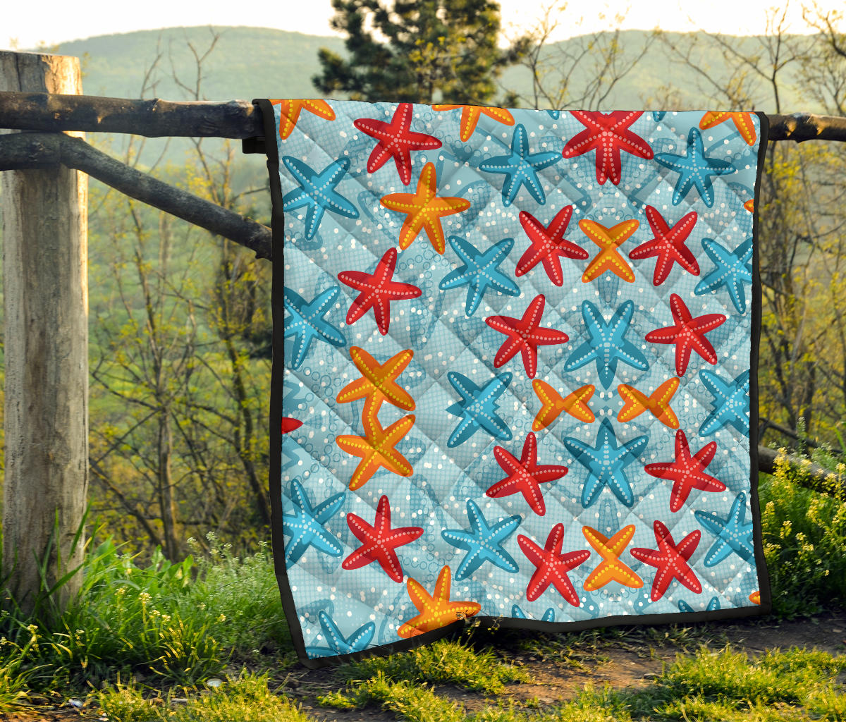 Blue Red Orange Starfish Pattern Premium Quilt is a uniqued design and limited item. It made to order, hand printed, and sewn with love in our factory.
