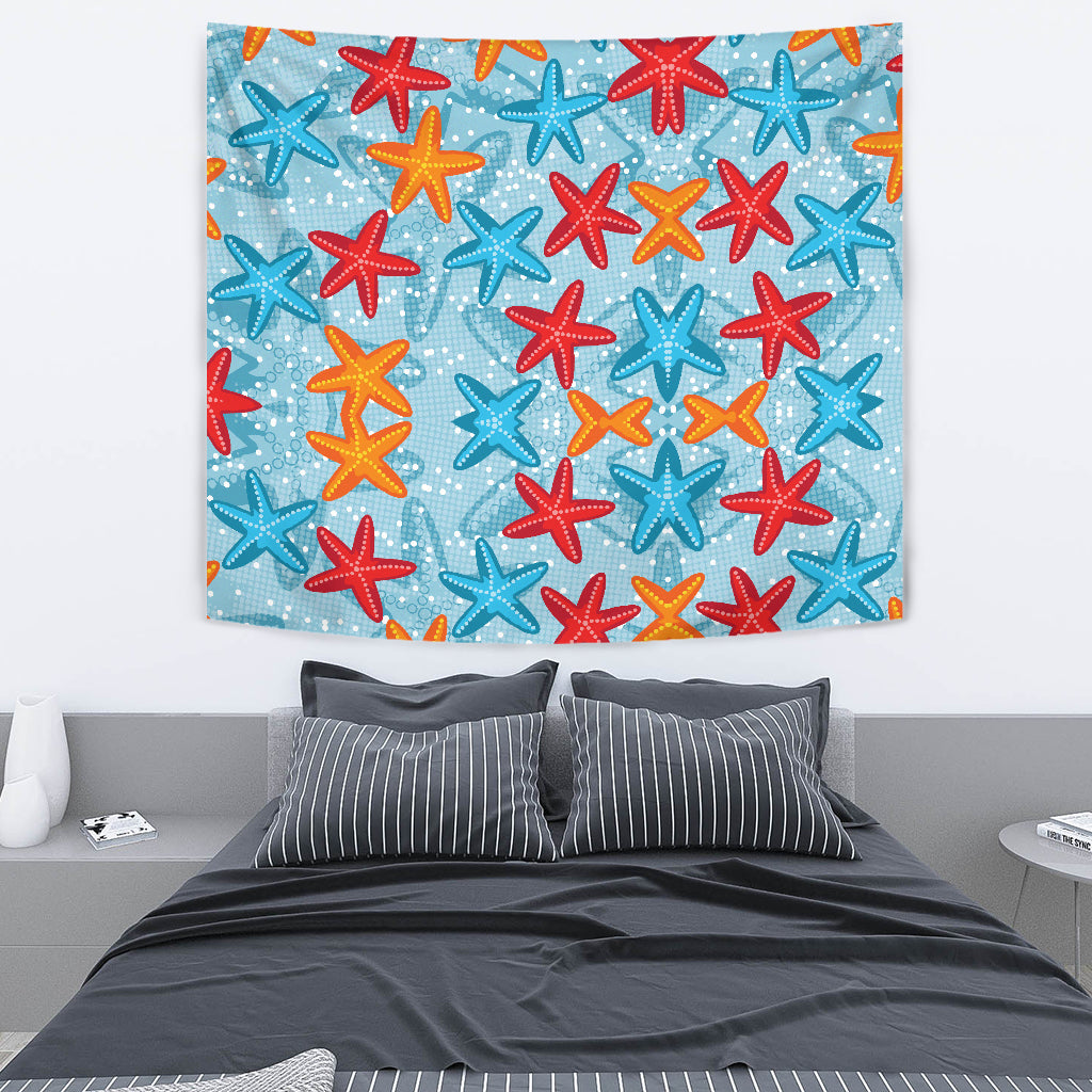 Blue Red Orange Starfish Pattern Wall Tapestry