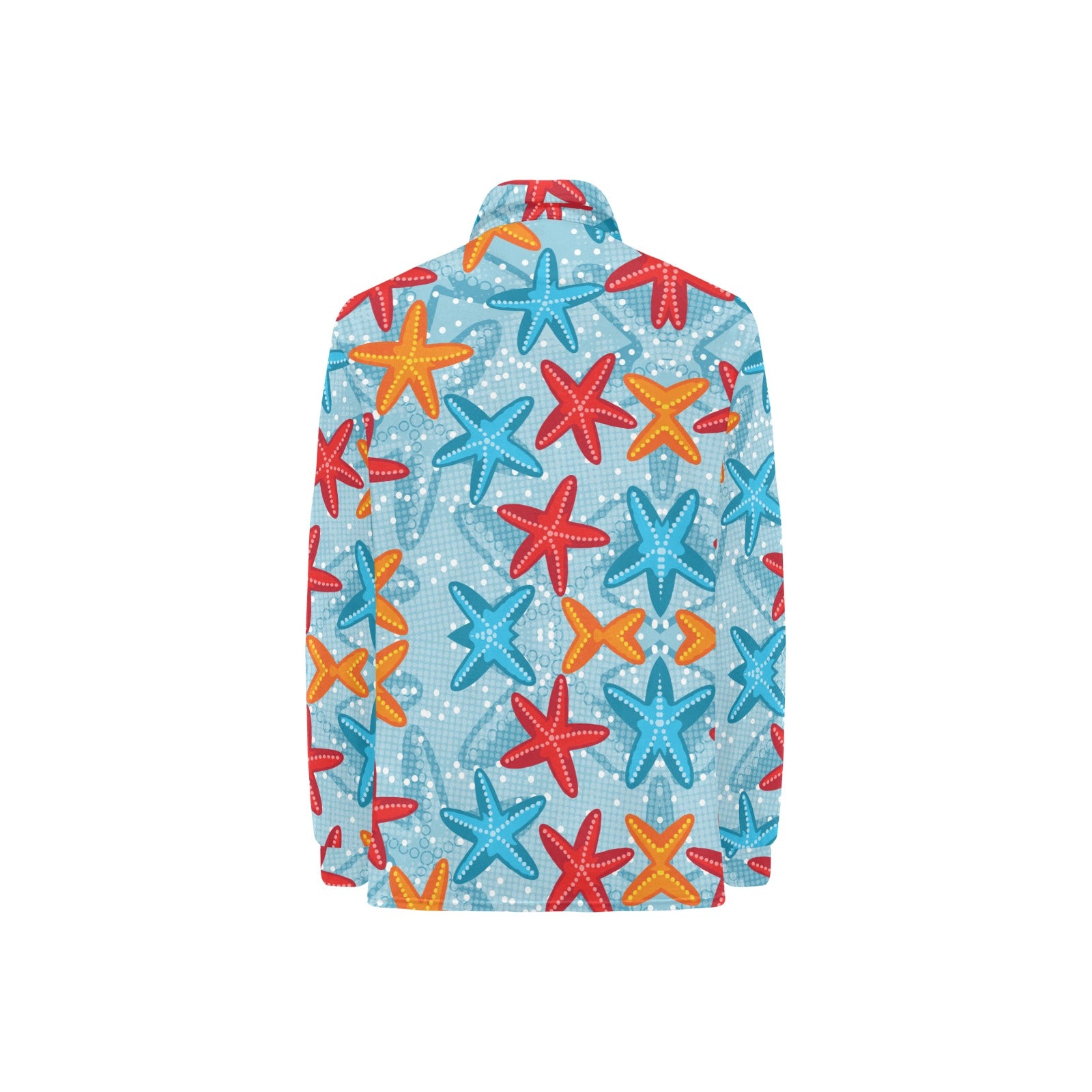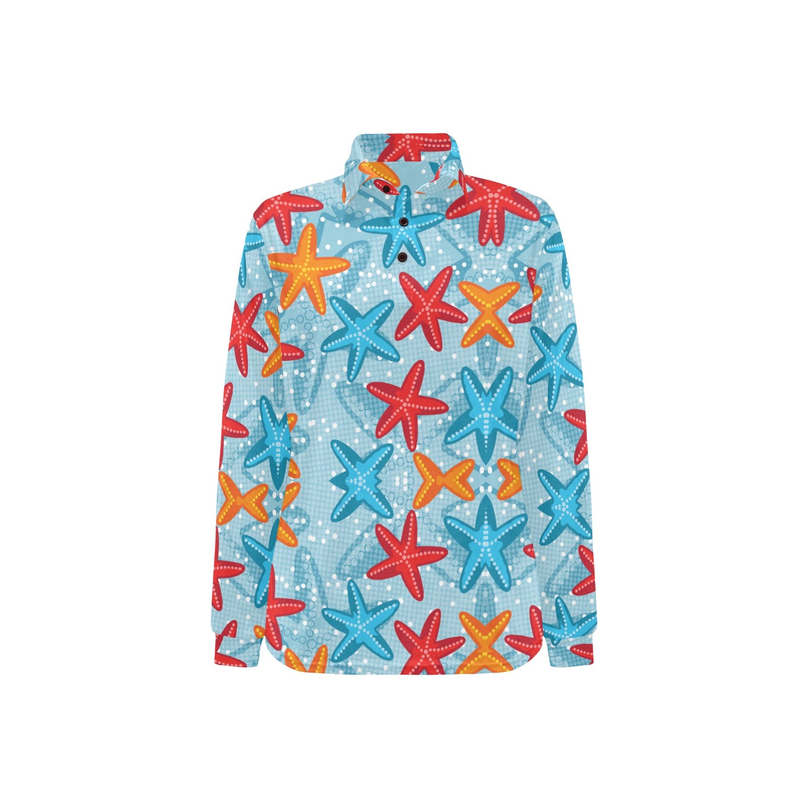 Blue red orange starfish pattern Women's Long Sleeve Polo Shirt