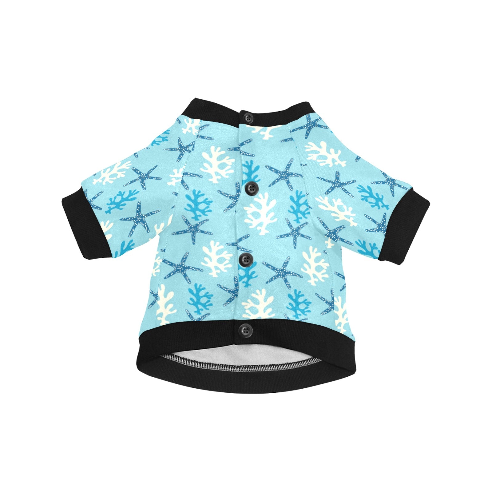 Blue starfish coral reef pattern All Over Print Pet Dog Round Neck Fuzzy Shirt
