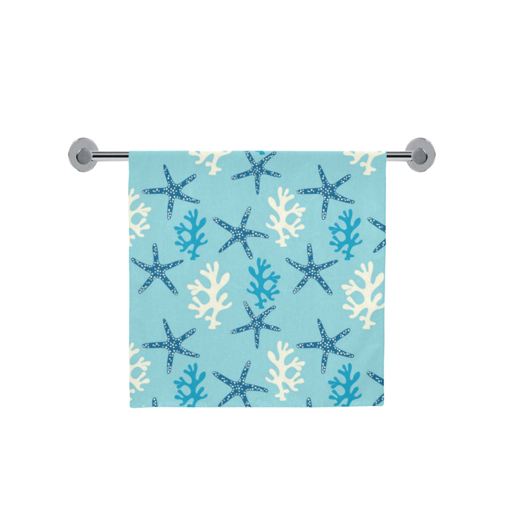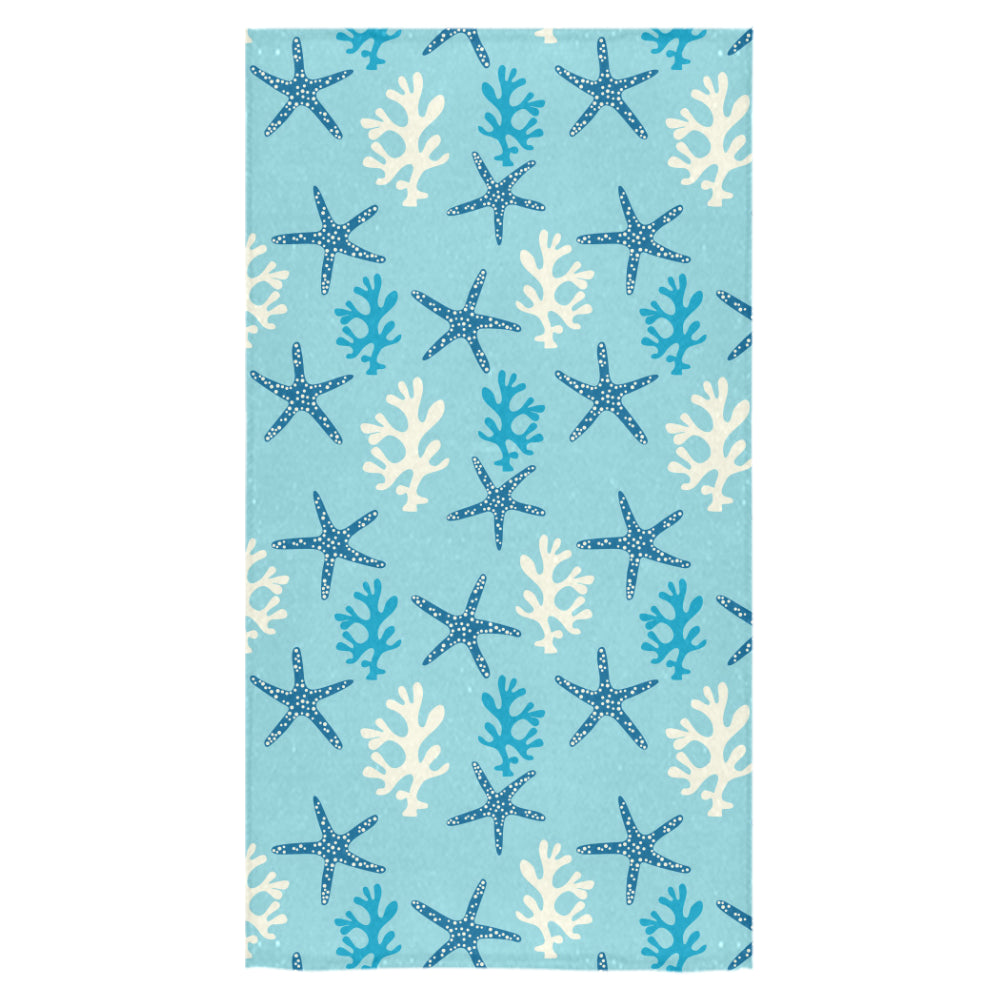 Blue starfish coral reef pattern Bath Towel 30"x56" is a uniqued design and limited item. It made to order, hand printed, and sewn with love in our factory.