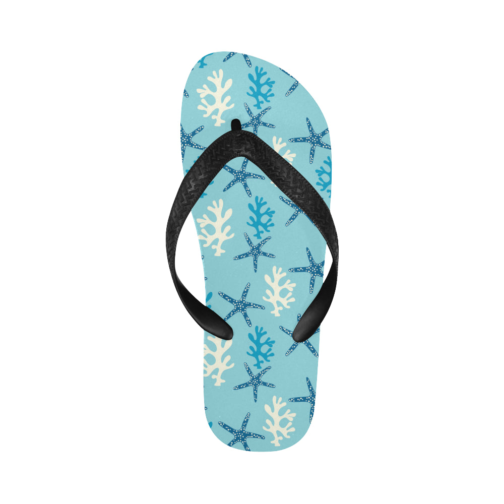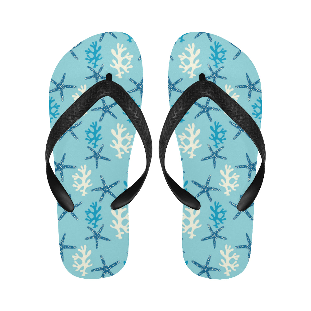 Blue starfish coral reef pattern Unisex Flip Flops is a uniqued design and limited item. It made to order, hand printed, and sewn with love in our factory.