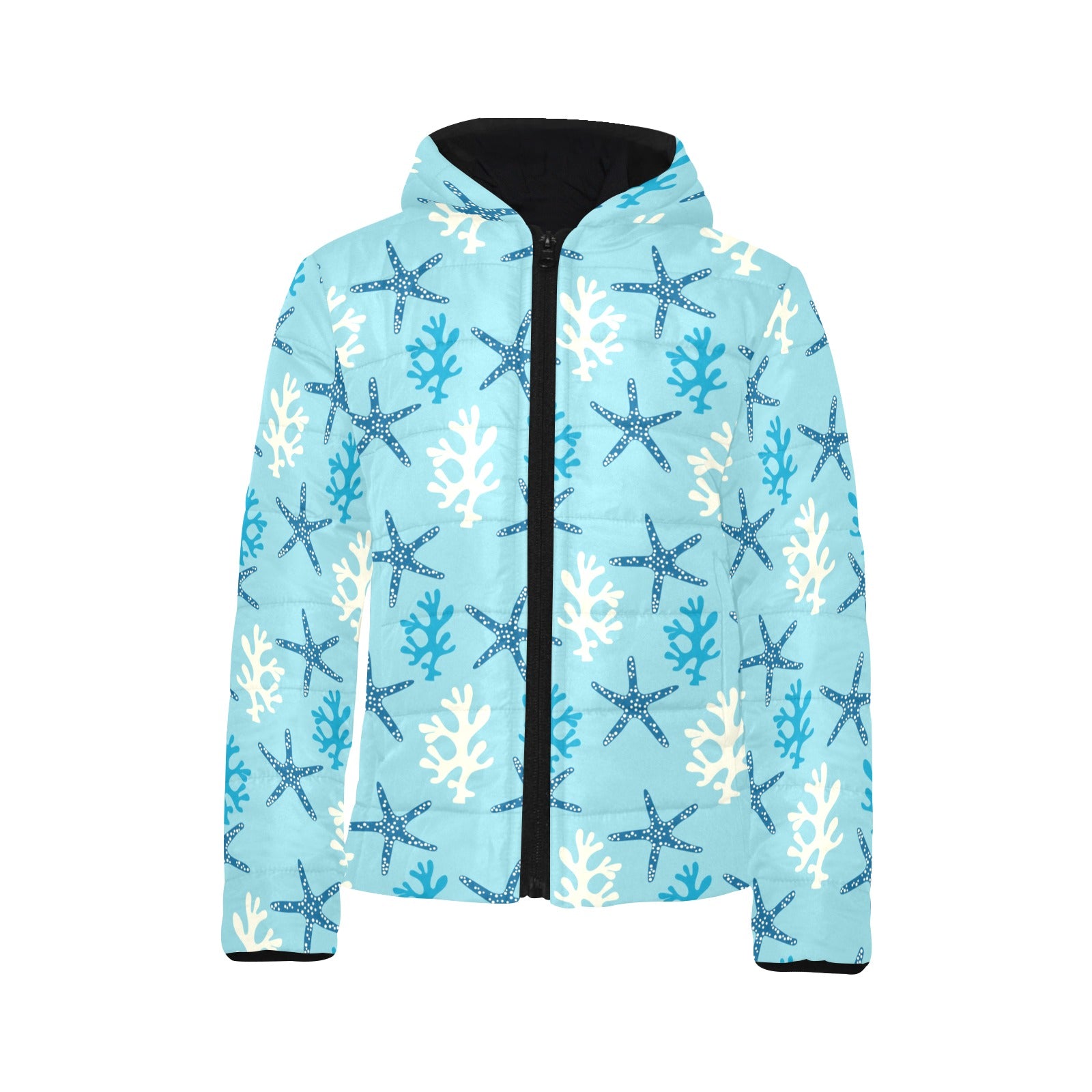 Blue starfish coral reef pattern Kids' Boys' Girls' Padded Hooded Jacket
