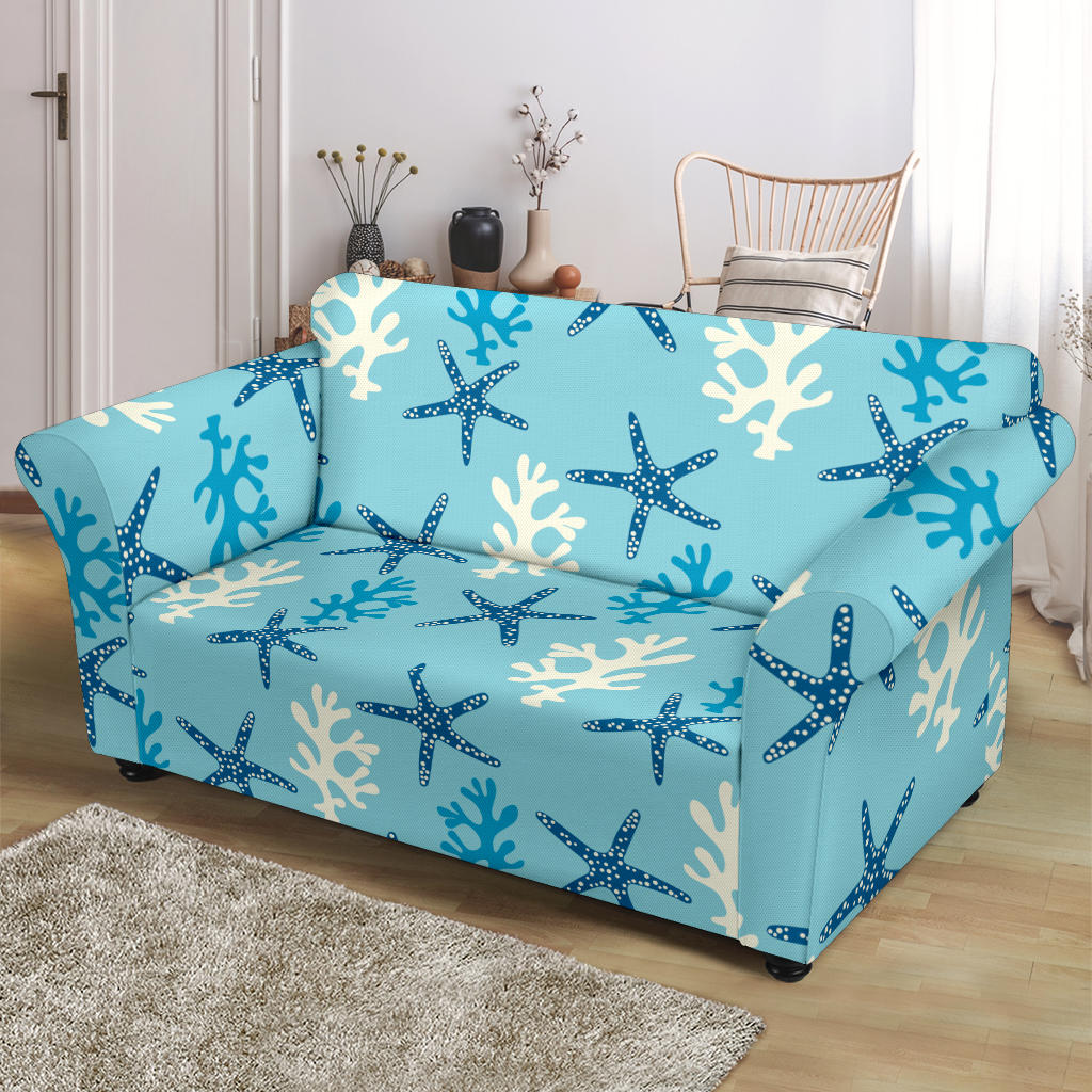 Blue Starfish Coral Reef Pattern Loveseat Couch Slipcover