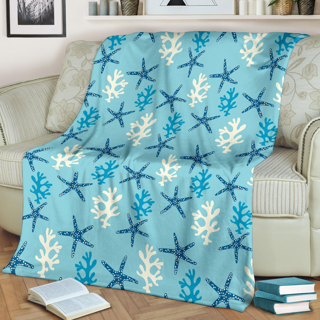 Blue starfish coral reef pattern Premium Blanket is a uniqued design and limited item. It made to order, hand printed, and sewn with love in our factory.