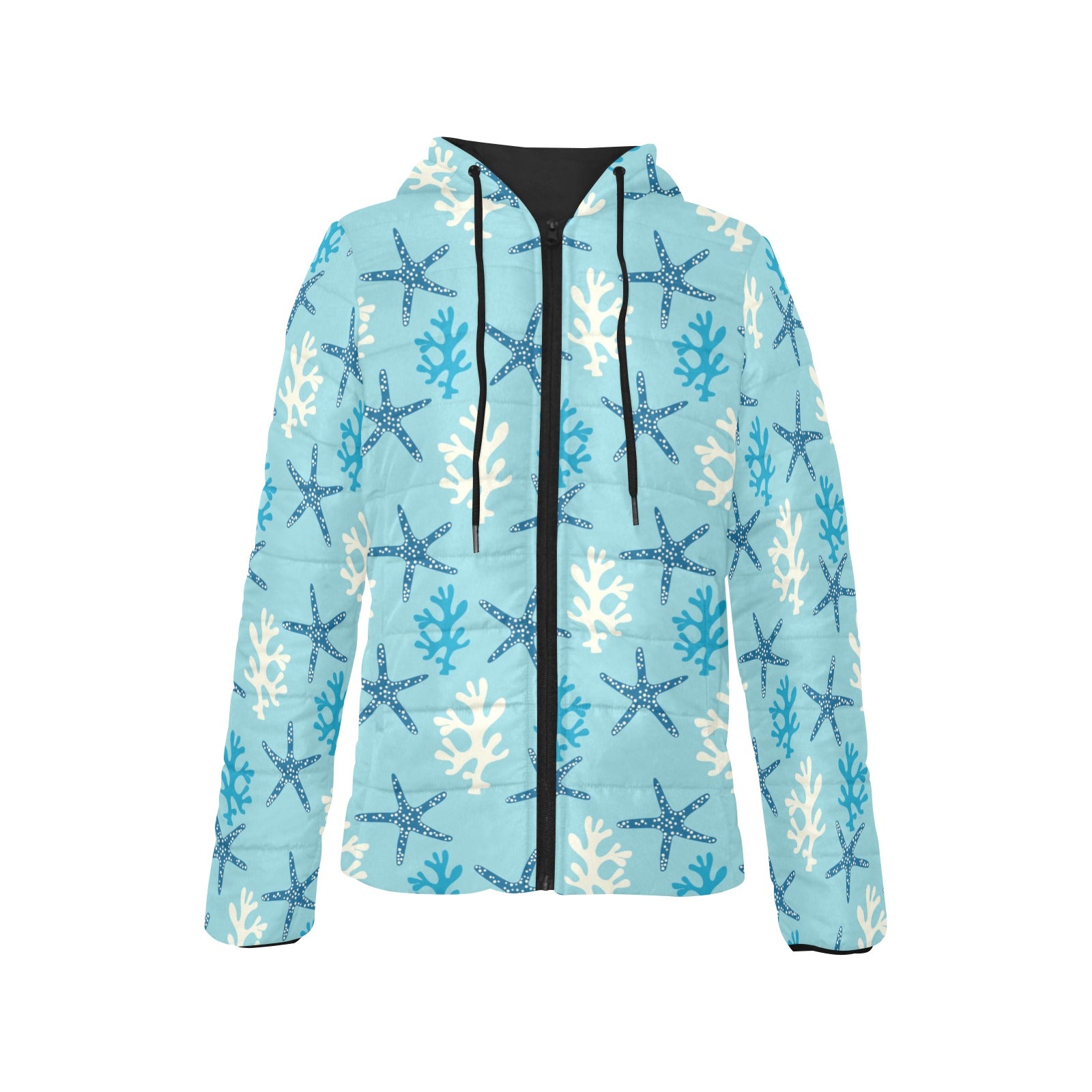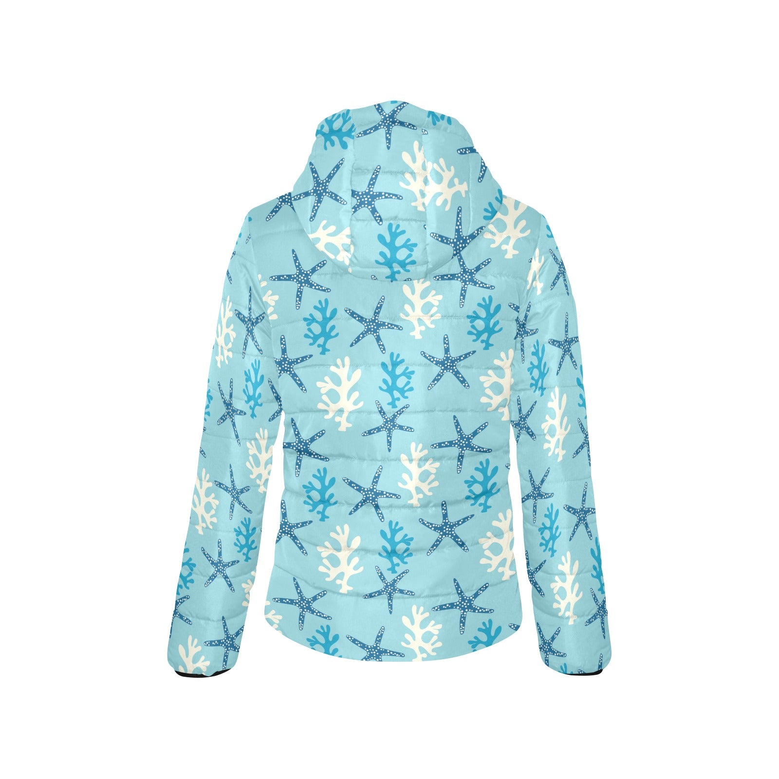 Blue starfish coral reef pattern Women's Padded Hooded Jacket
