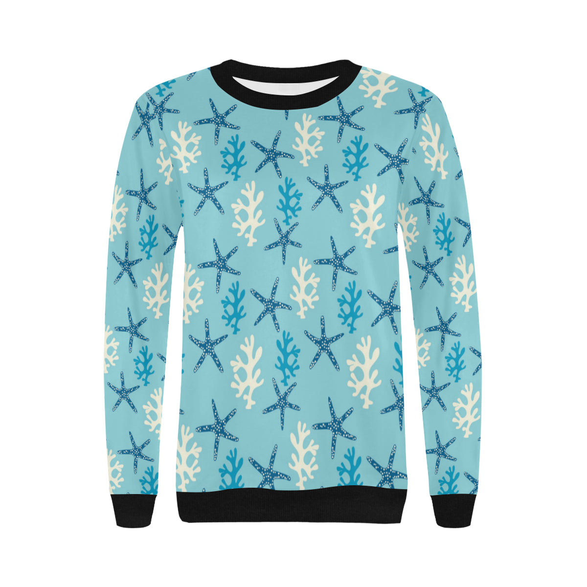 Blue starfish coral reef pattern Women's Crew Neck Sweatshirt