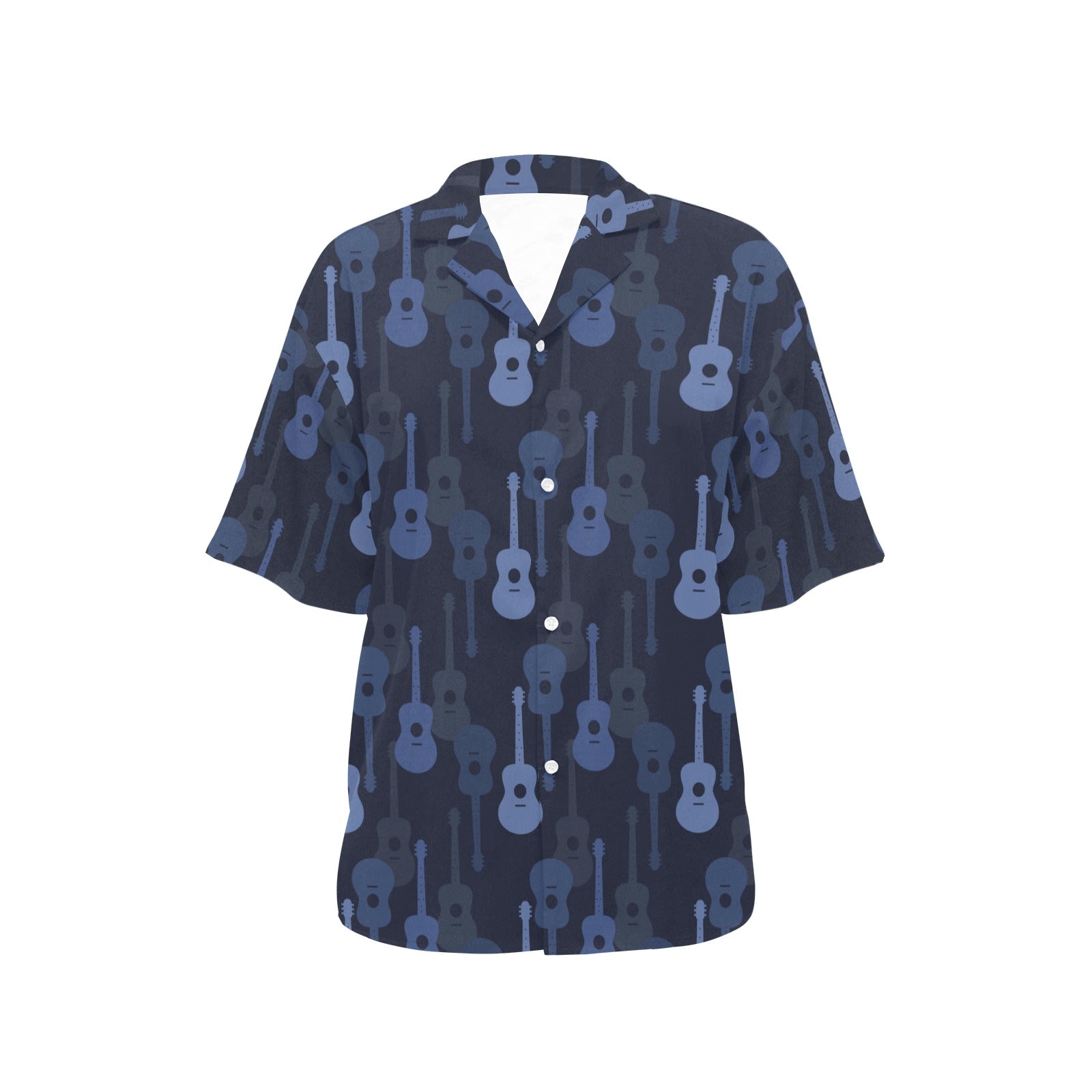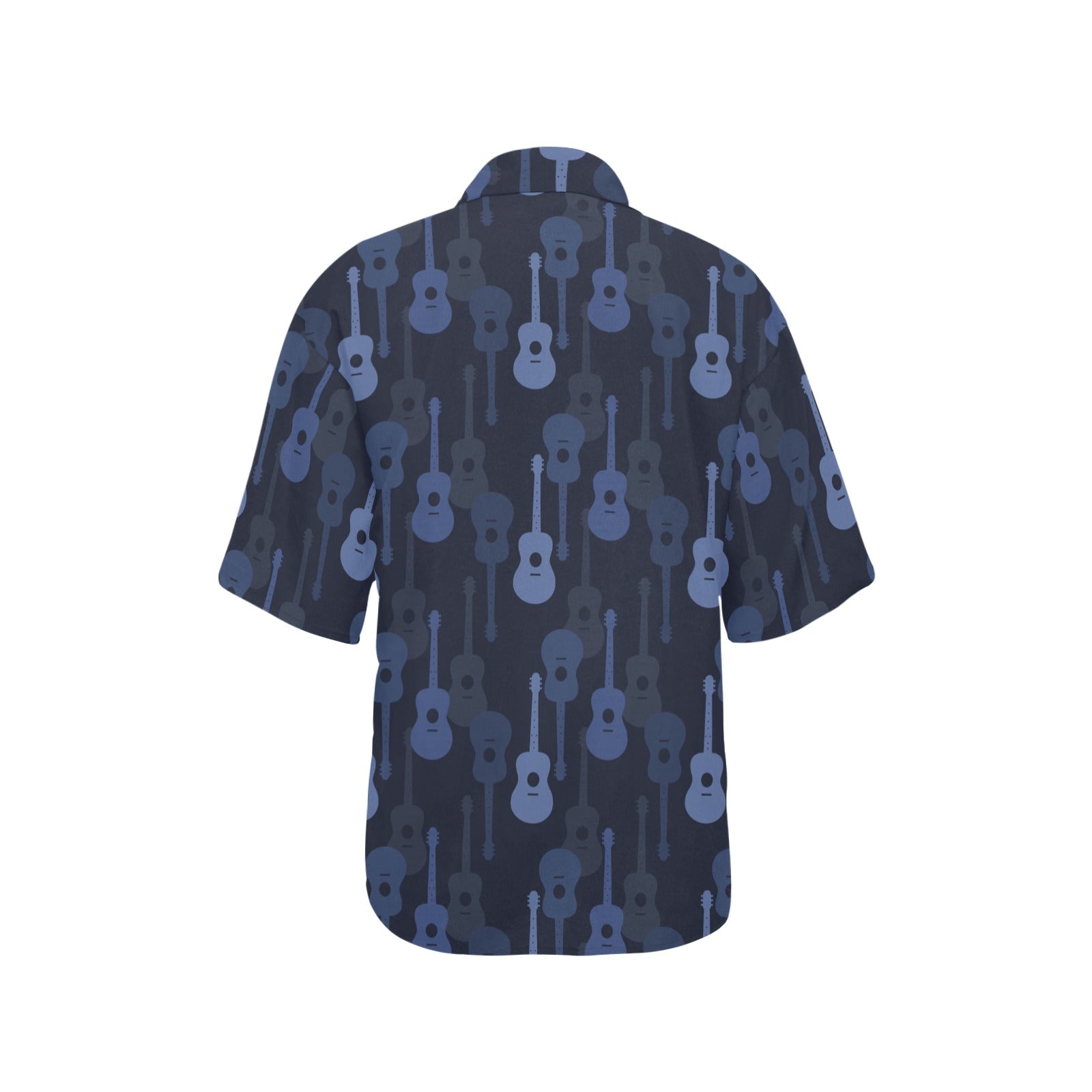 Blue Theme guitar pattern Women's All Over Print Hawaiian Shirt