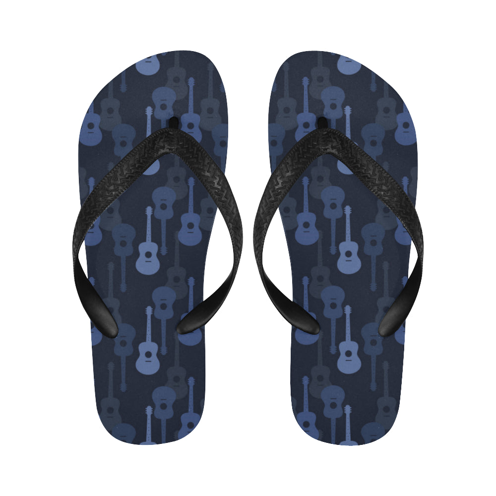 Blue Theme guitar pattern Unisex Flip Flops is a uniqued design and limited item. It made to order, hand printed, and sewn with love in our factory.