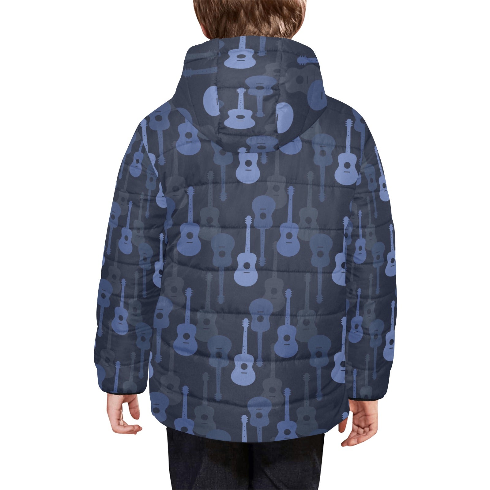 Blue Theme guitar pattern Kids' Boys' Girls' Padded Hooded Jacket