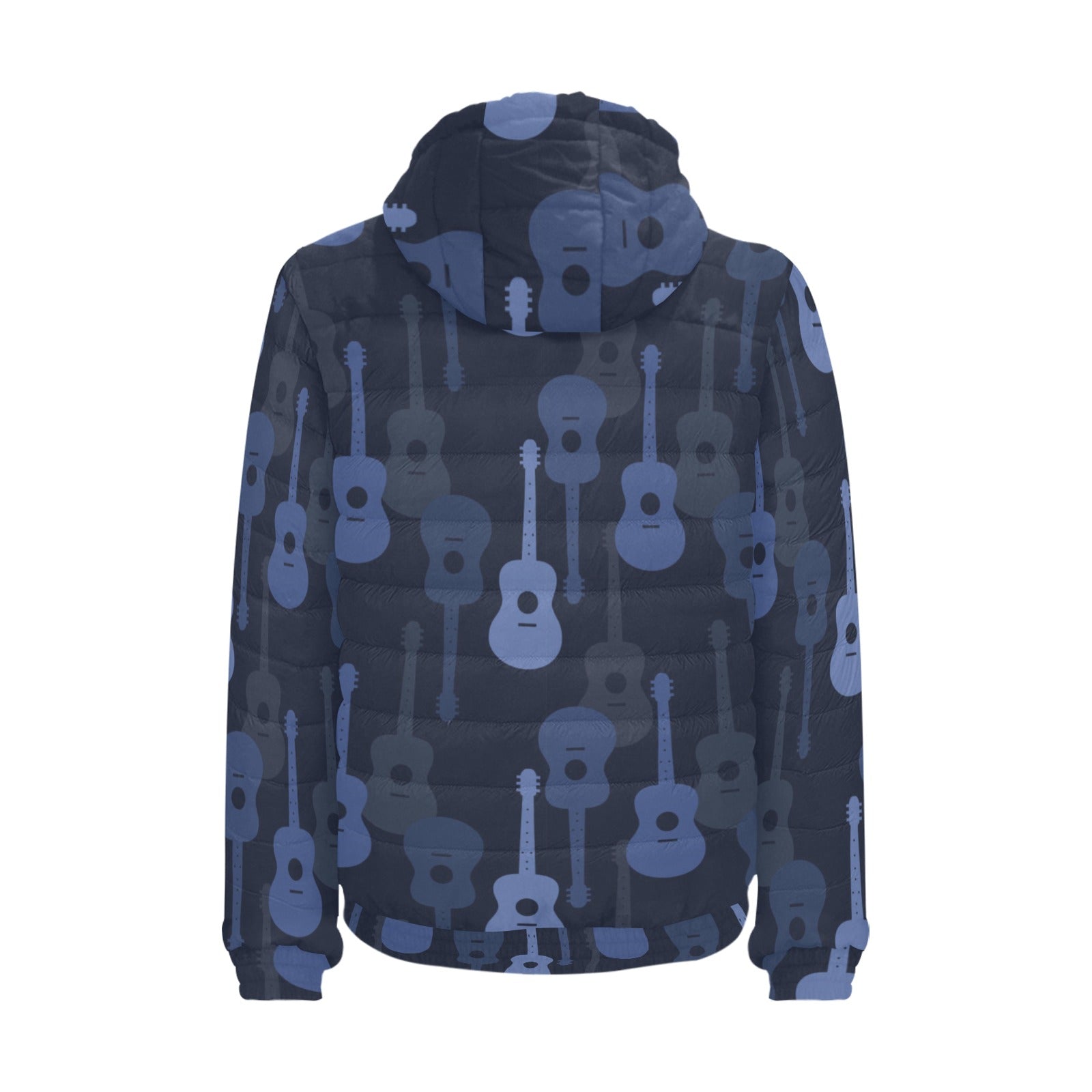 Blue Theme guitar pattern Men's Padded Hooded Jacket