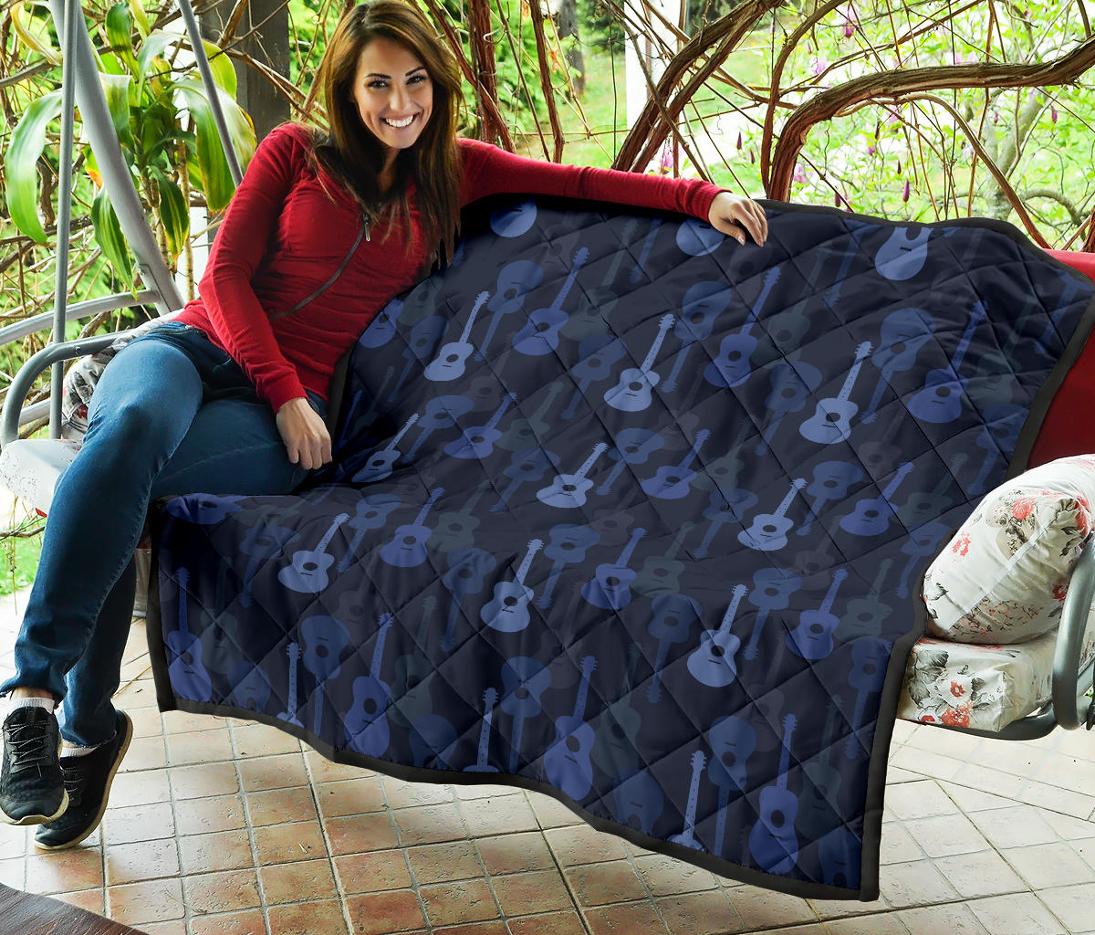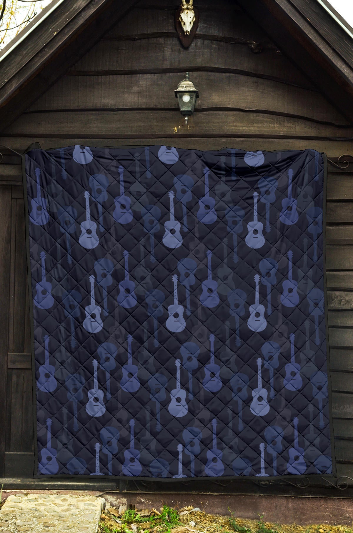 Blue Theme Guitar Pattern Premium Quilt is a uniqued design and limited item. It made to order, hand printed, and sewn with love in our factory.