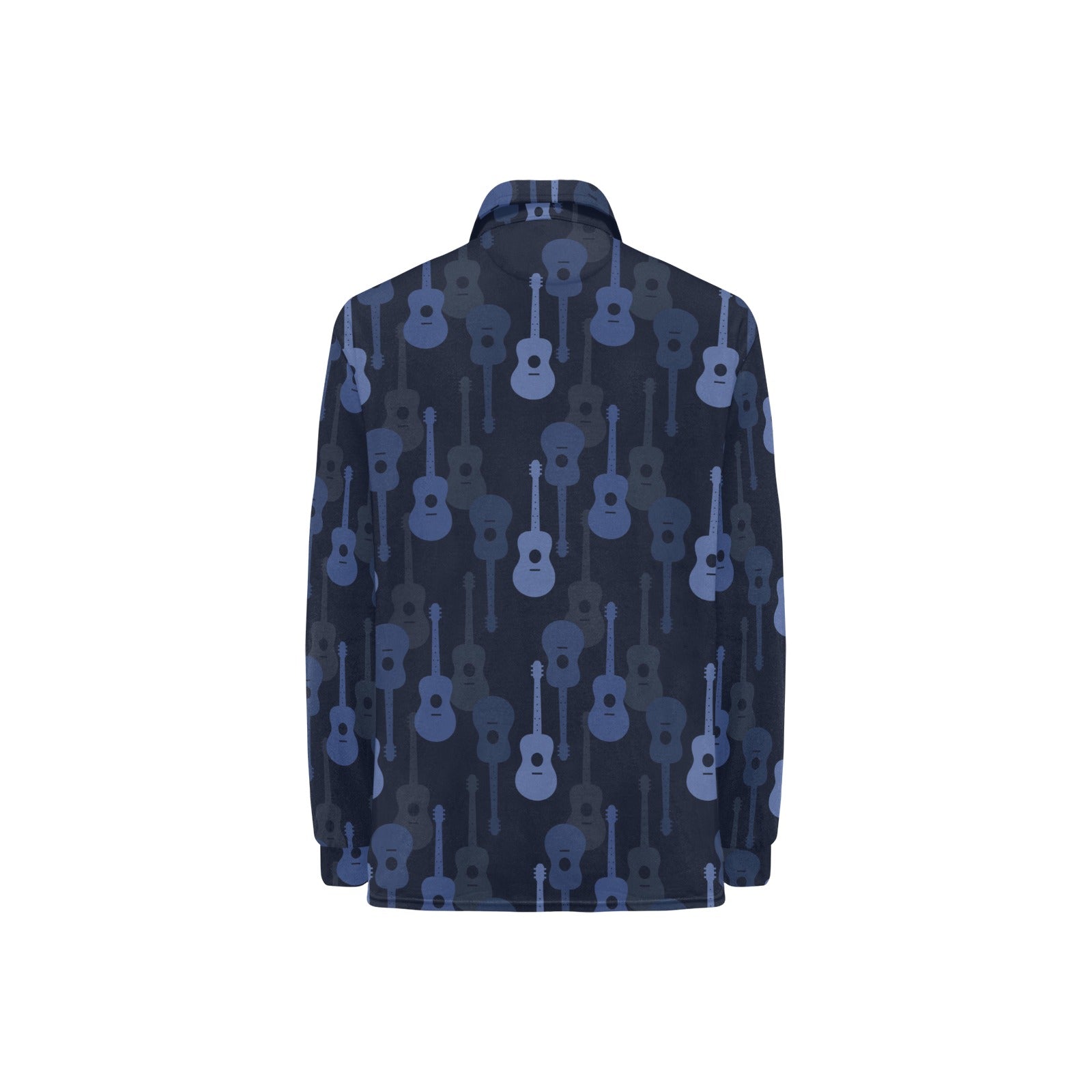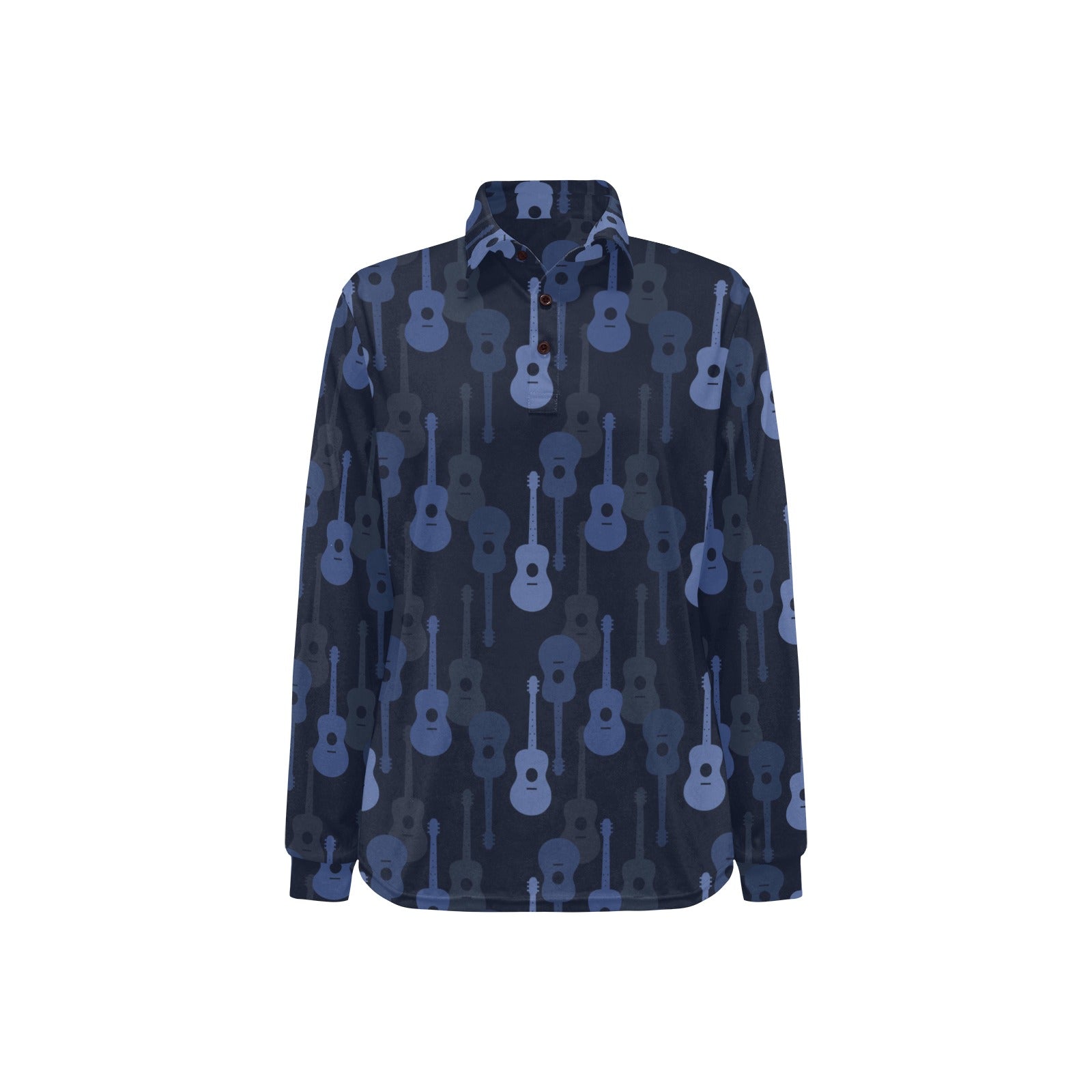 Blue Theme guitar pattern Women's Long Sleeve Polo Shirt