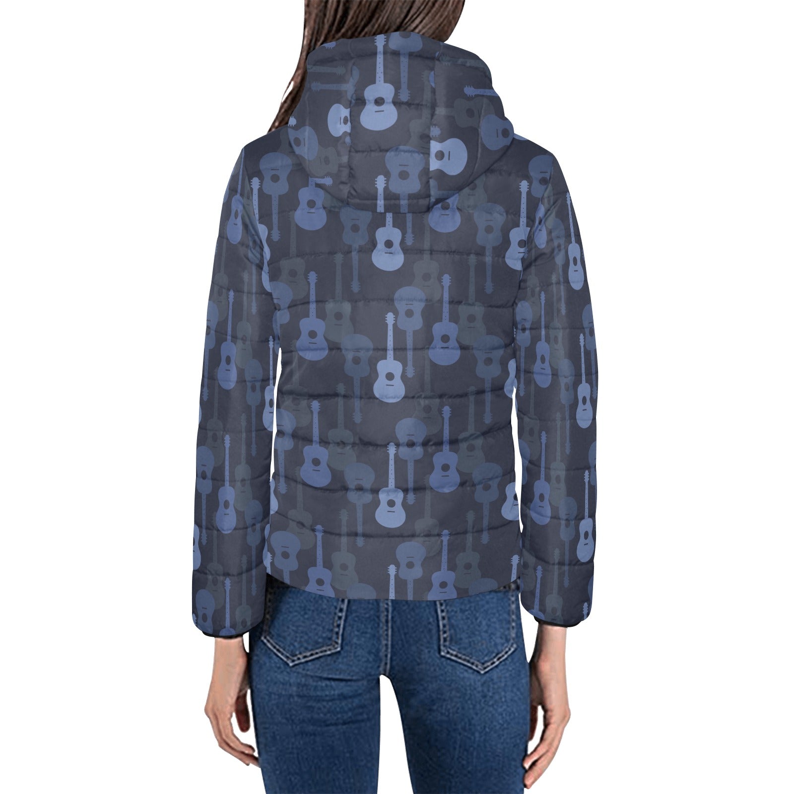 Blue Theme guitar pattern Women's Padded Hooded Jacket