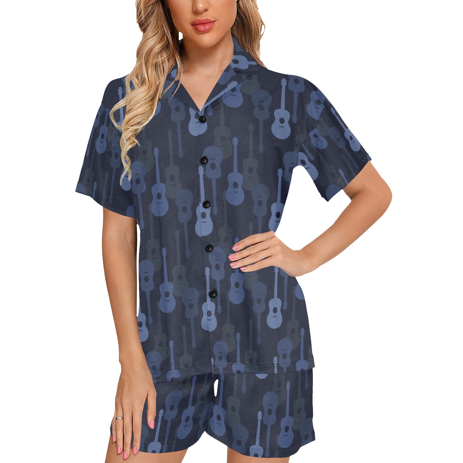 Blue Theme guitar pattern Women's V-Neck Short Pajama Set