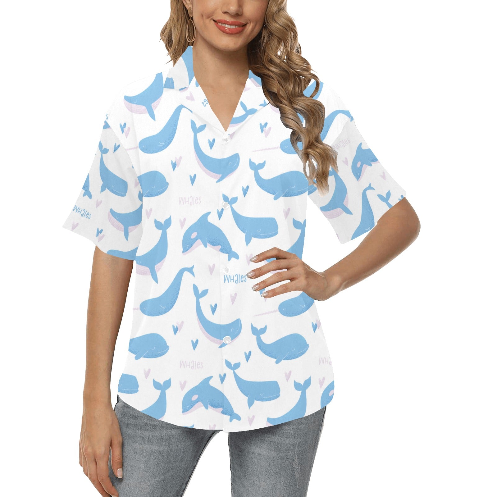 Blue whale pattern Women's All Over Print Hawaiian Shirt
