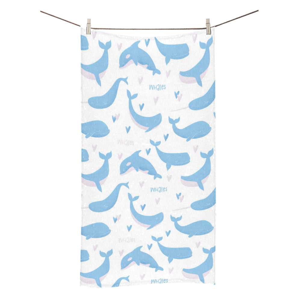 Blue whale pattern Bath Towel 30"x56" is a uniqued design and limited item. It made to order, hand printed, and sewn with love in our factory.