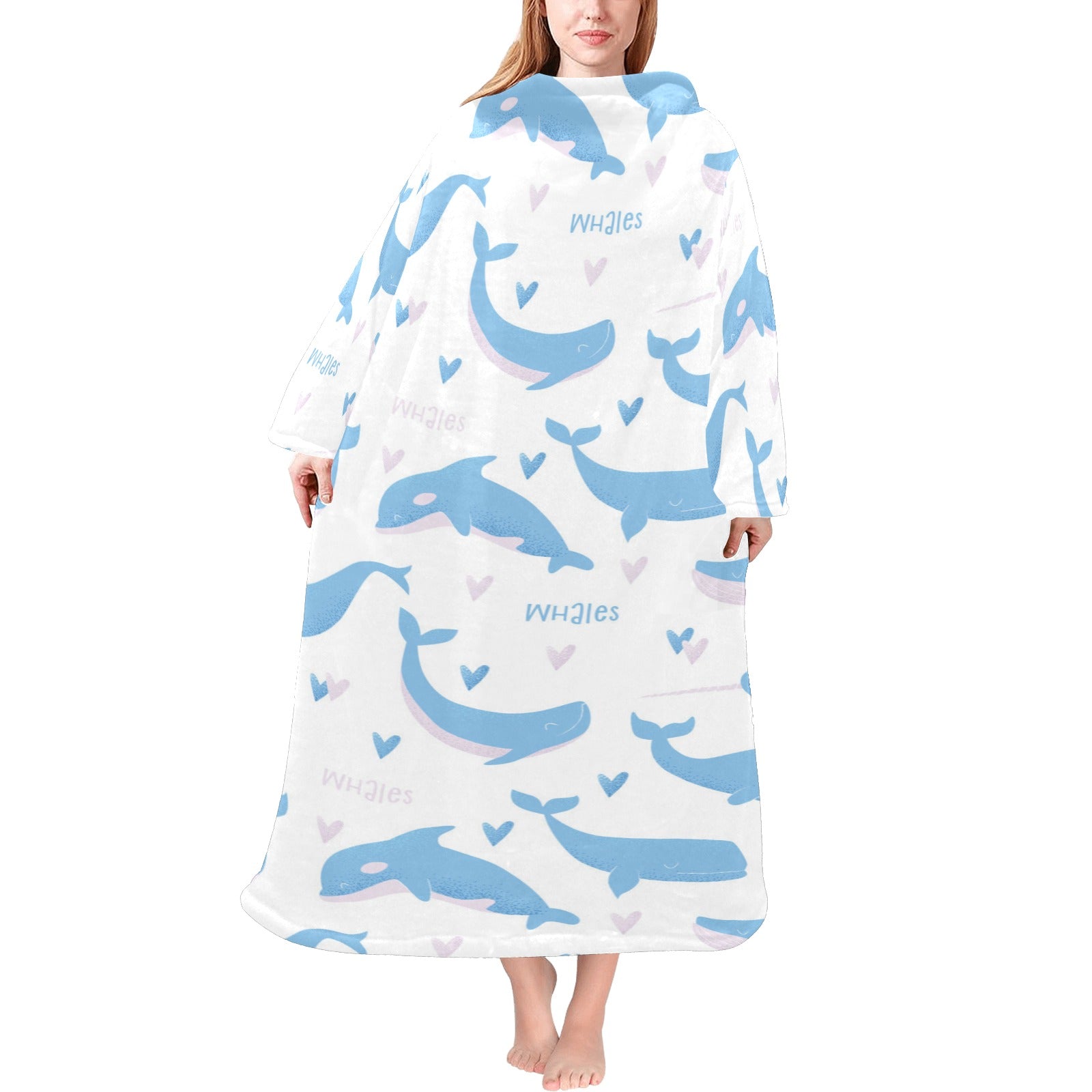 Blue whale pattern Blanket Robe with Sleeves