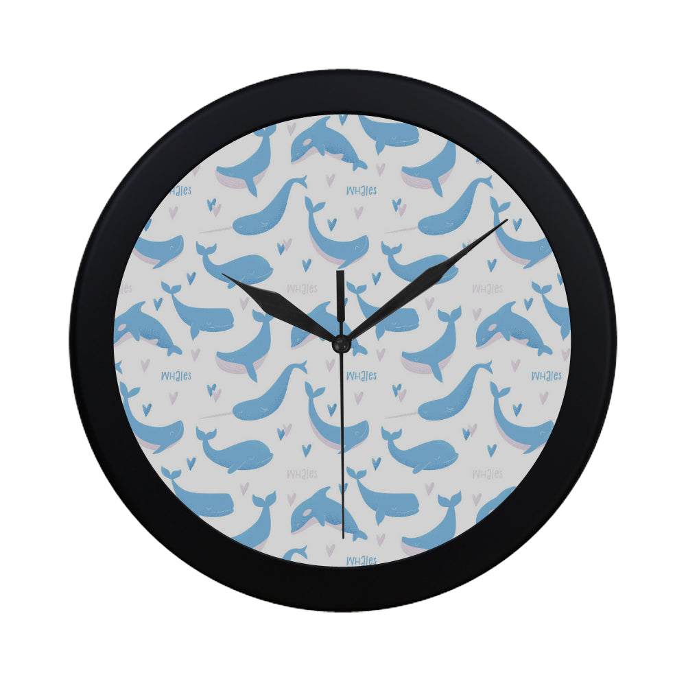 Blue whale pattern Boys Celebrating Elegant Black Wall Clock is a uniqued design and limited item. It made to order, hand printed, and sewn with love in our factory.
