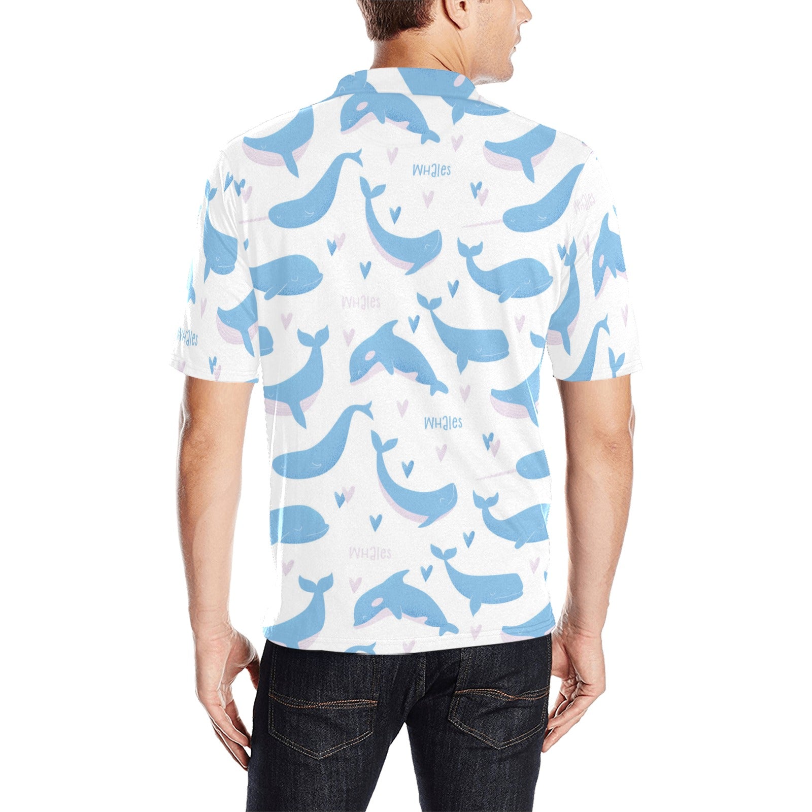 Blue whale pattern Men's All Over Print Polo Shirt