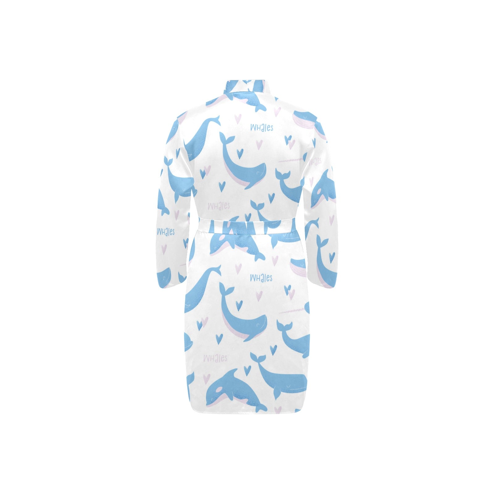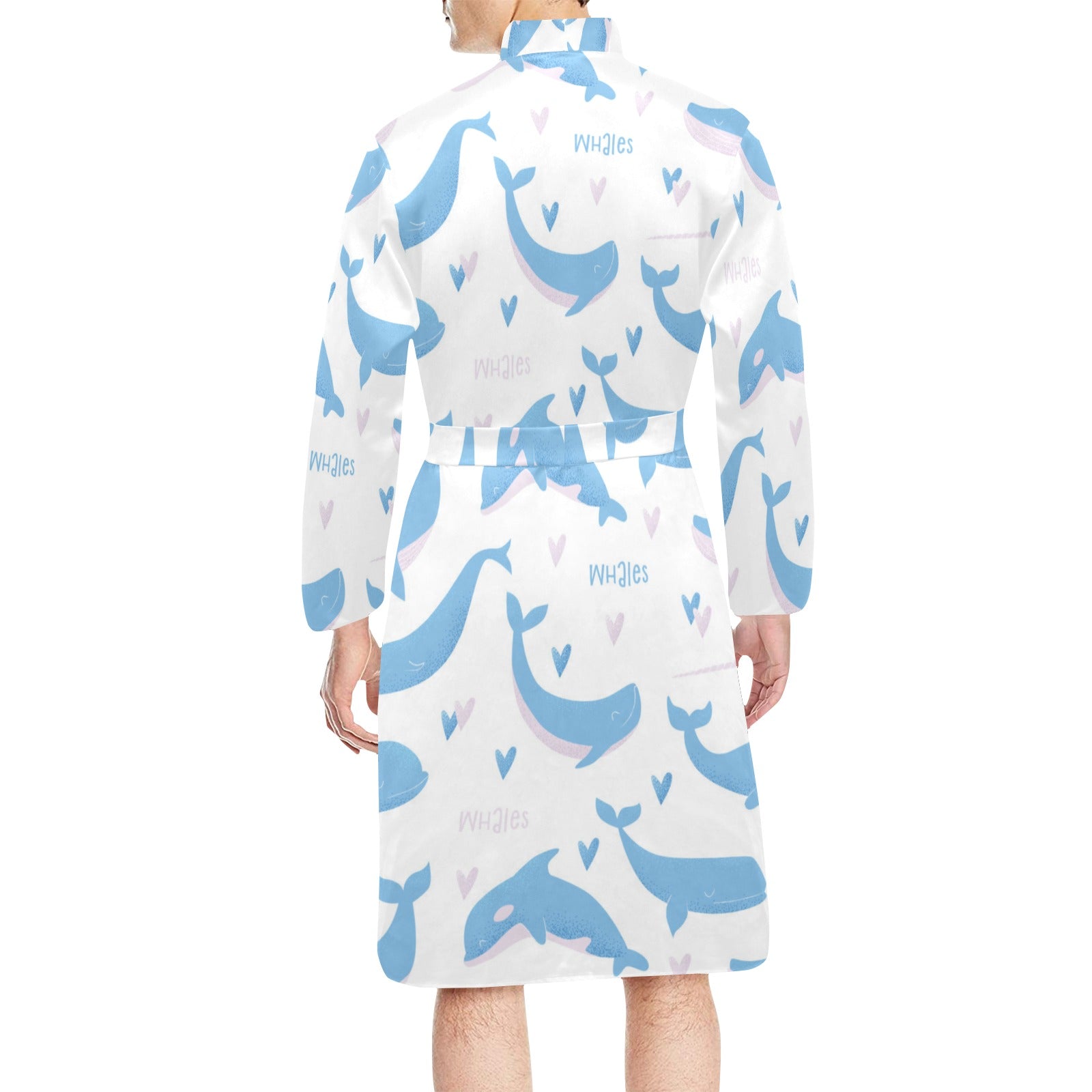 Blue whale pattern Men's Long Sleeve Belted Night Robe
