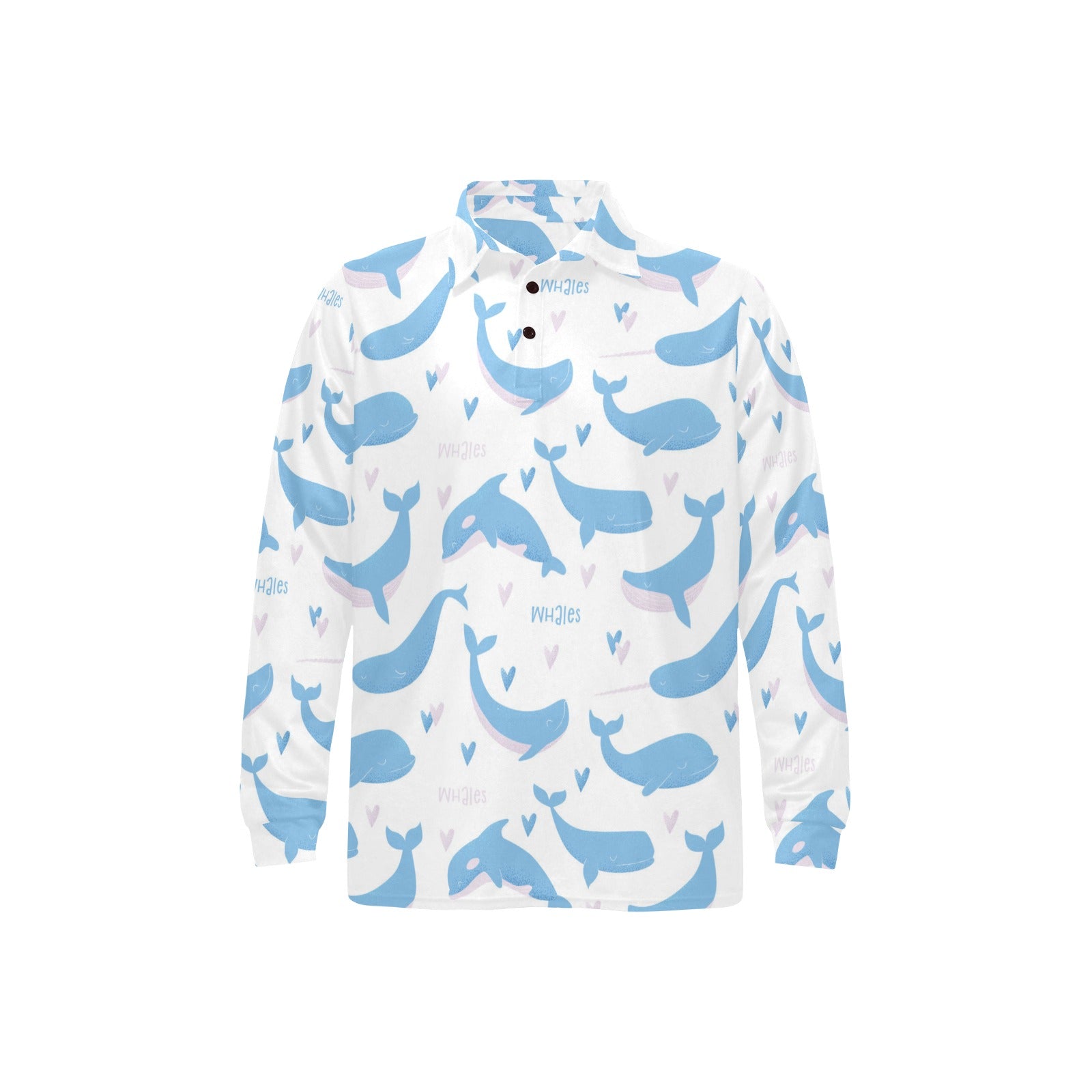 Blue whale pattern Men's Long Sleeve Polo Shirt