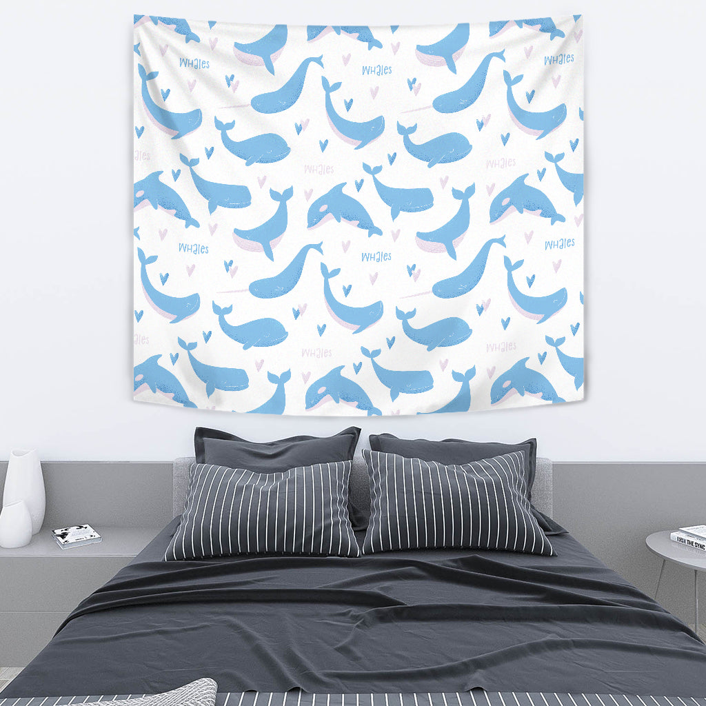 Blue whale pattern Tapestry is a uniqued design and limited item. It made to order, hand printed, and sewn with love in our factory.