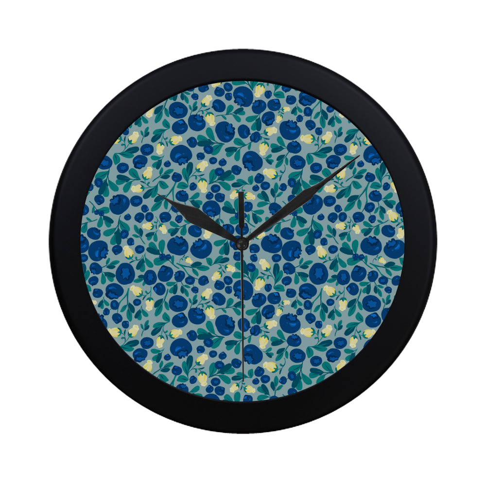 blueberry design pattern Elegant Black Wall Clock