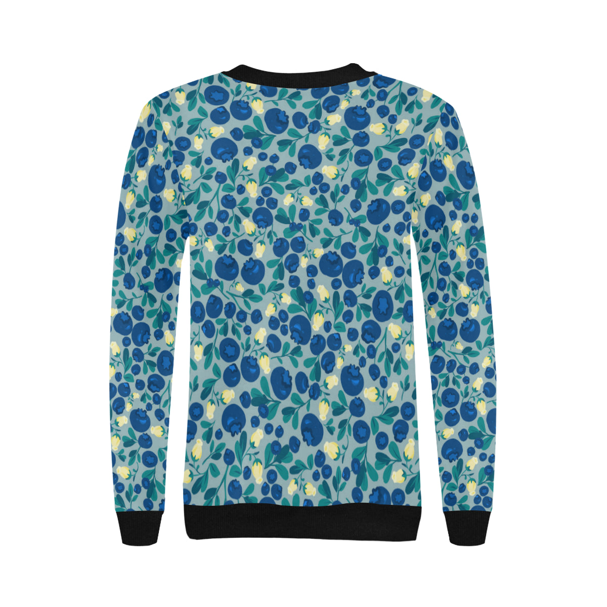 blueberry design pattern Women's Crew Neck Sweatshirt