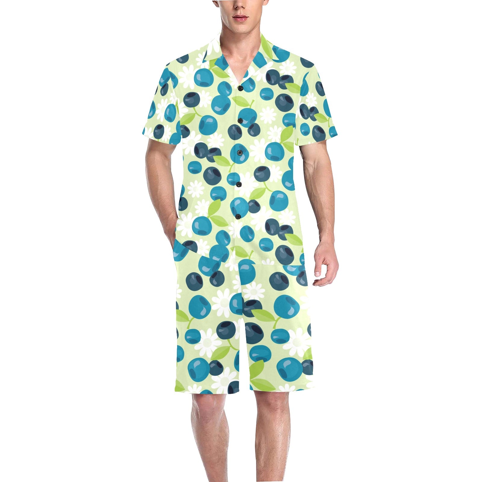 blueberry flower pattern Men's V-Neck Short Pajama Set