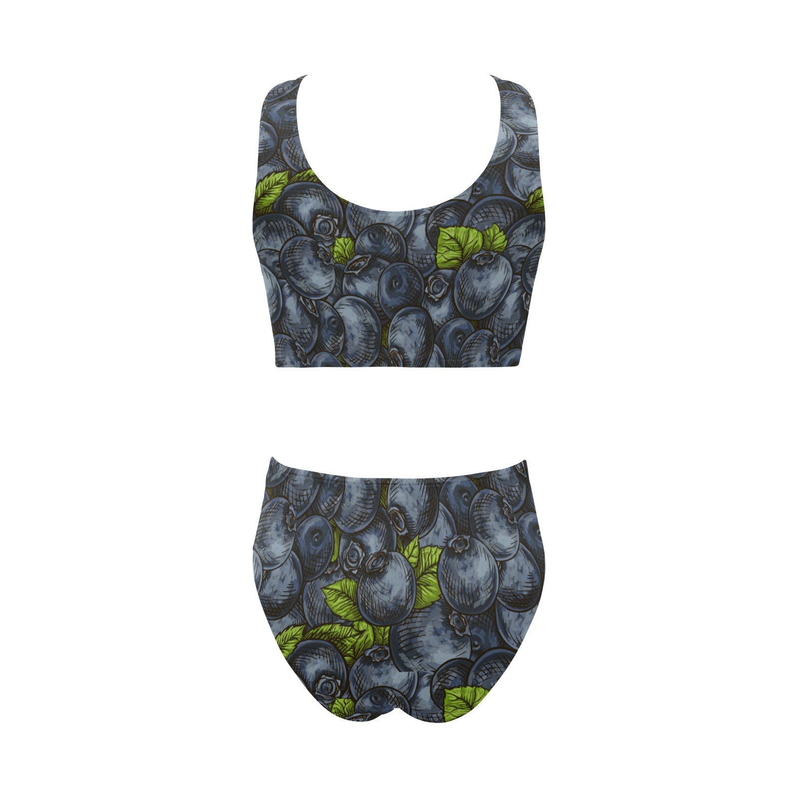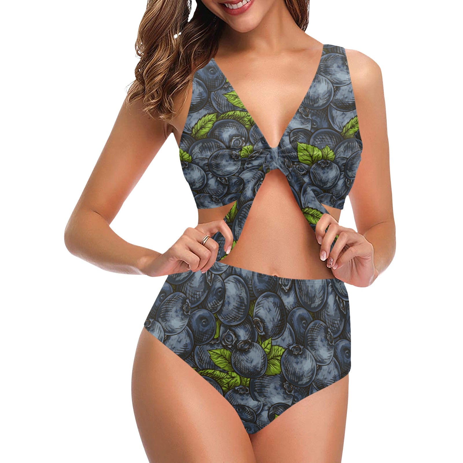 blueberry pattern Chest Bowknot High Waisted Bikini Swimsuit