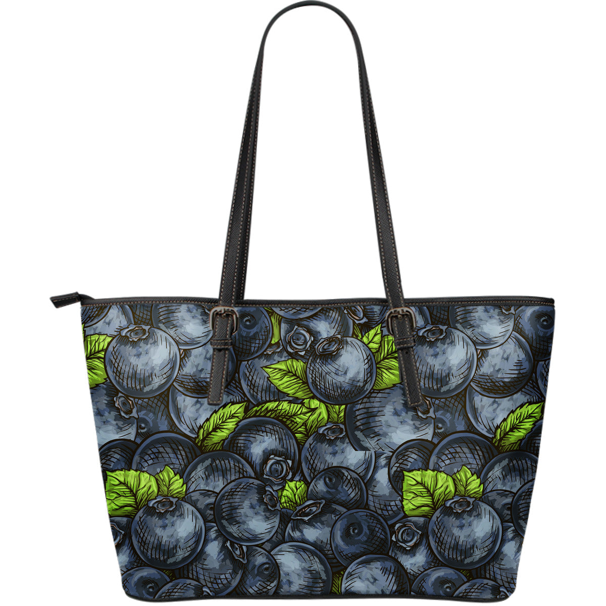 blueberry pattern Large Leather Tote Bag is a uniqued design and limited item. It made to order, hand printed, and sewn with love in our factory.