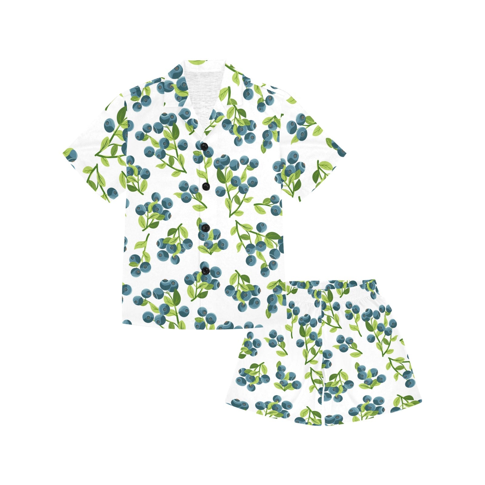 blueberry white background Kids' Boys' Girls' V-Neck Short Pajama Set