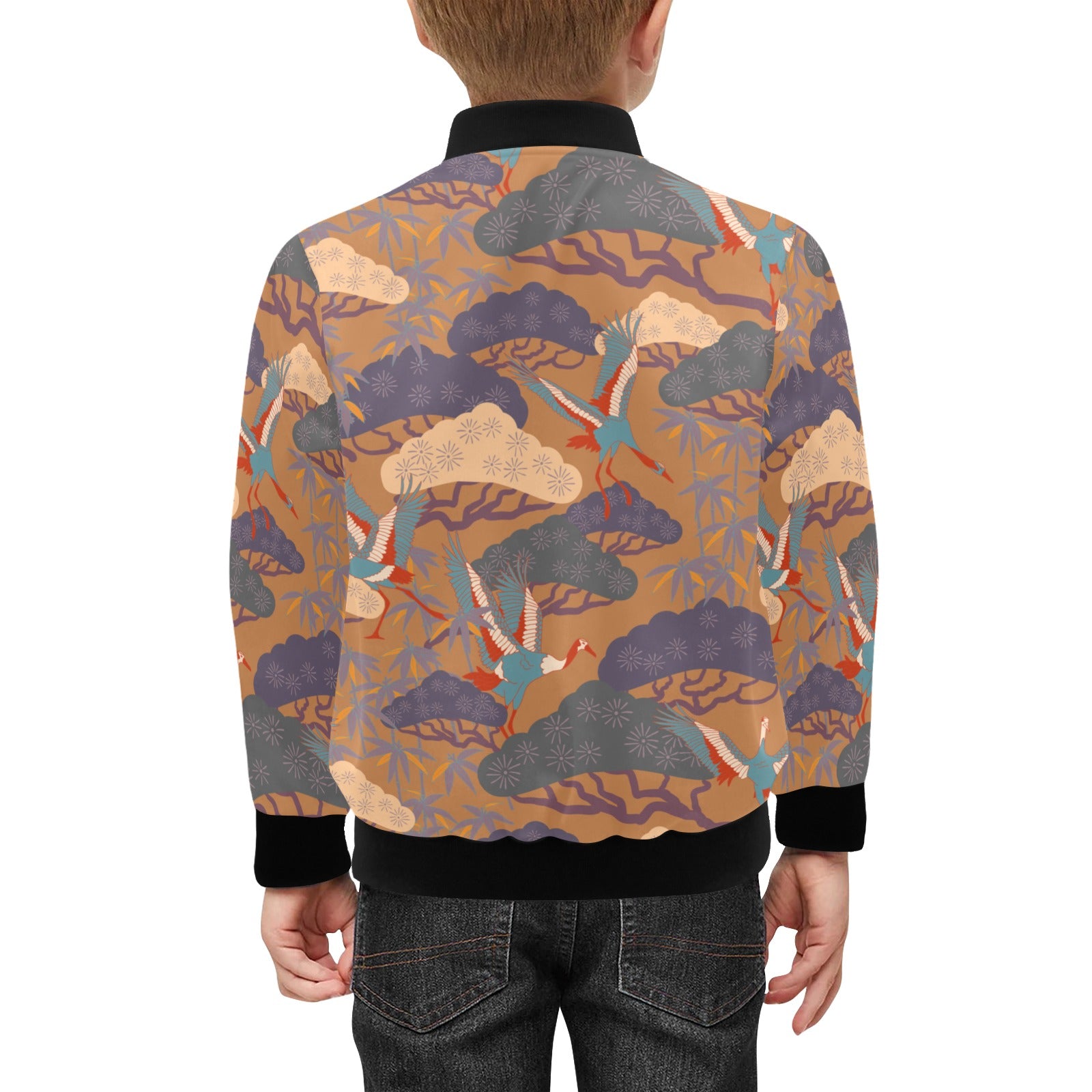 Bonsai bamboo stork japanese pattern brown theme Kids' Boys' Girls' Bomber Jacket