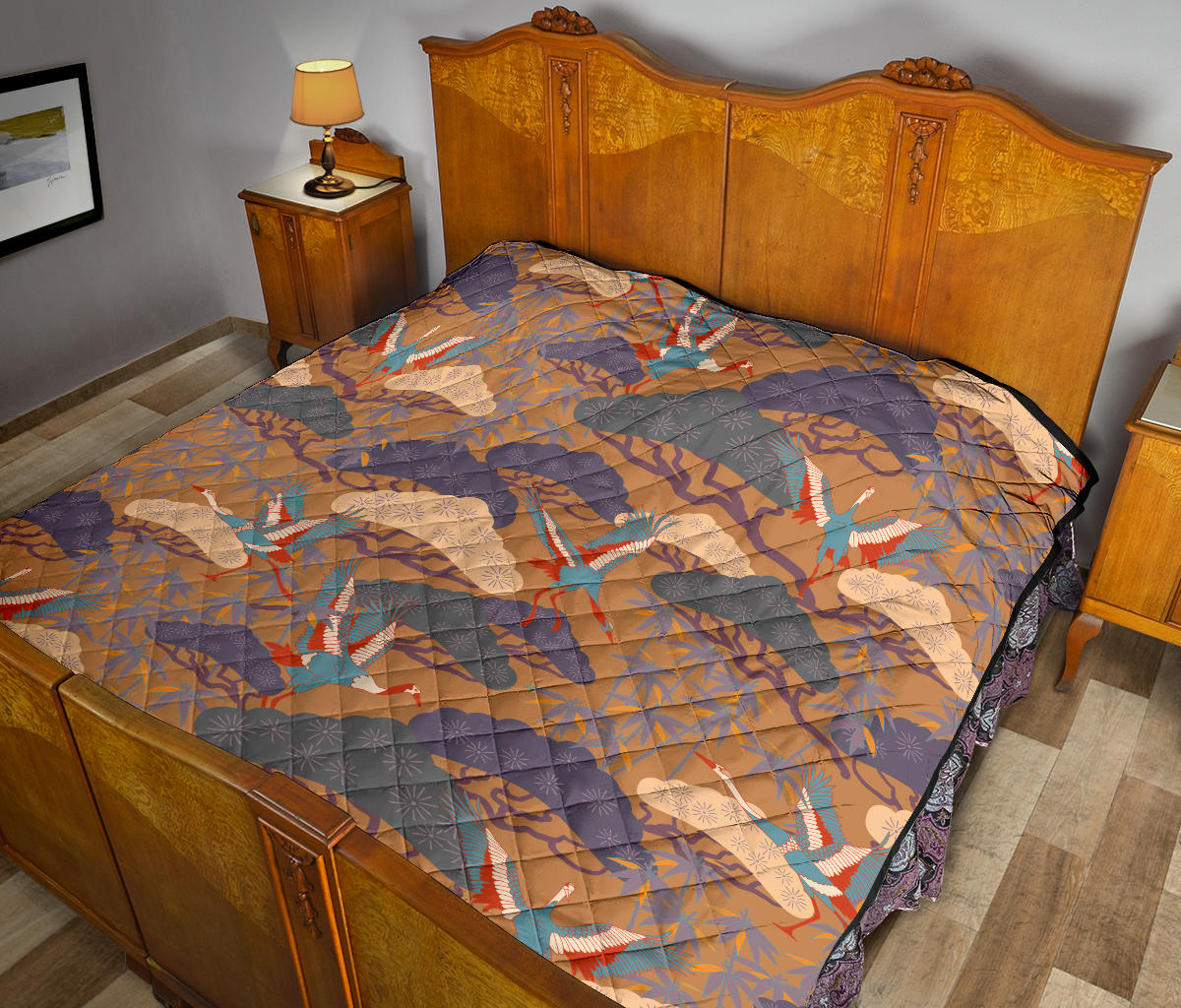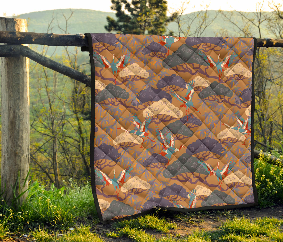 Bonsai Bamboo Stork Japanese Pattern Brown Theme Premium Quilt is a uniqued design and limited item. It made to order, hand printed, and sewn with love in our factory.