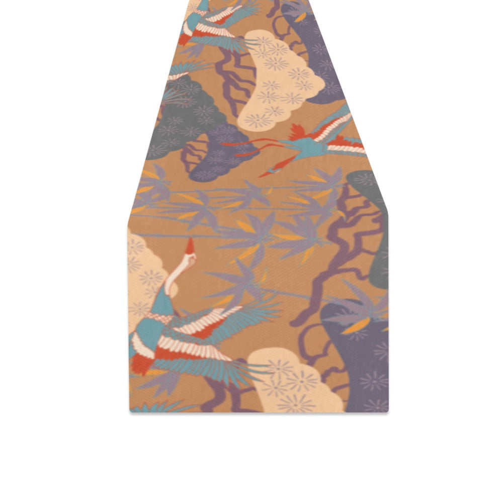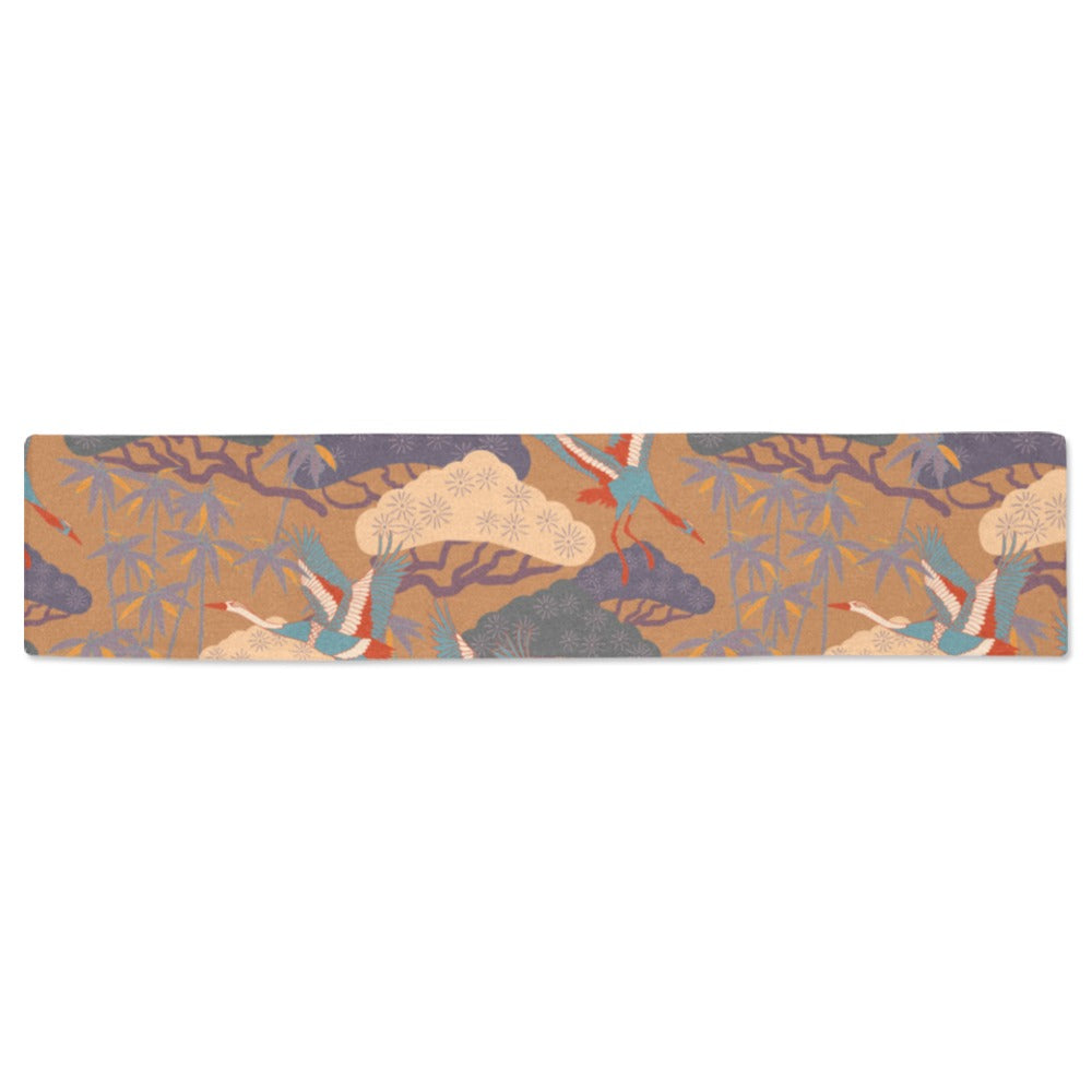 Bonsai bamboo stork japanese pattern brown theme Table Runner