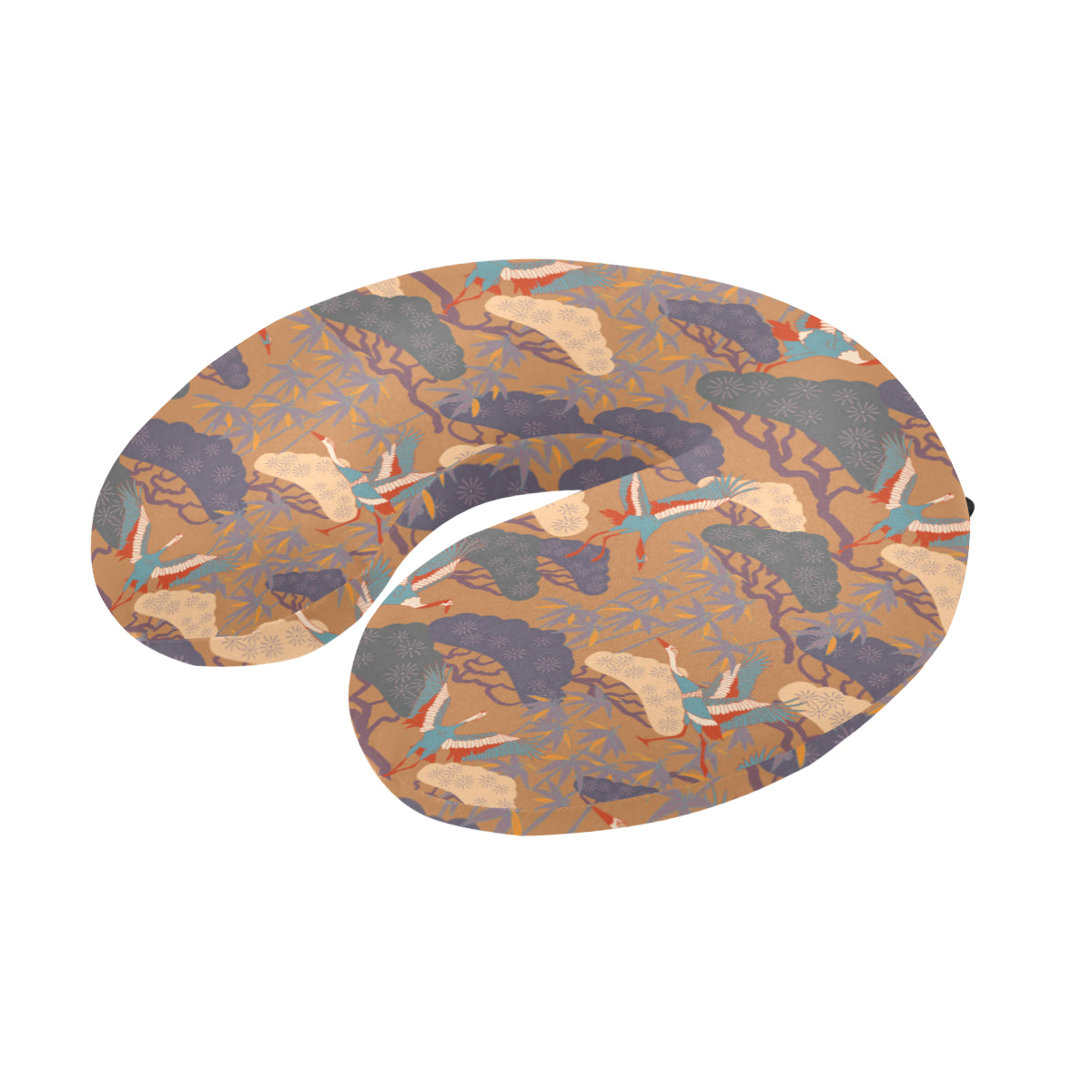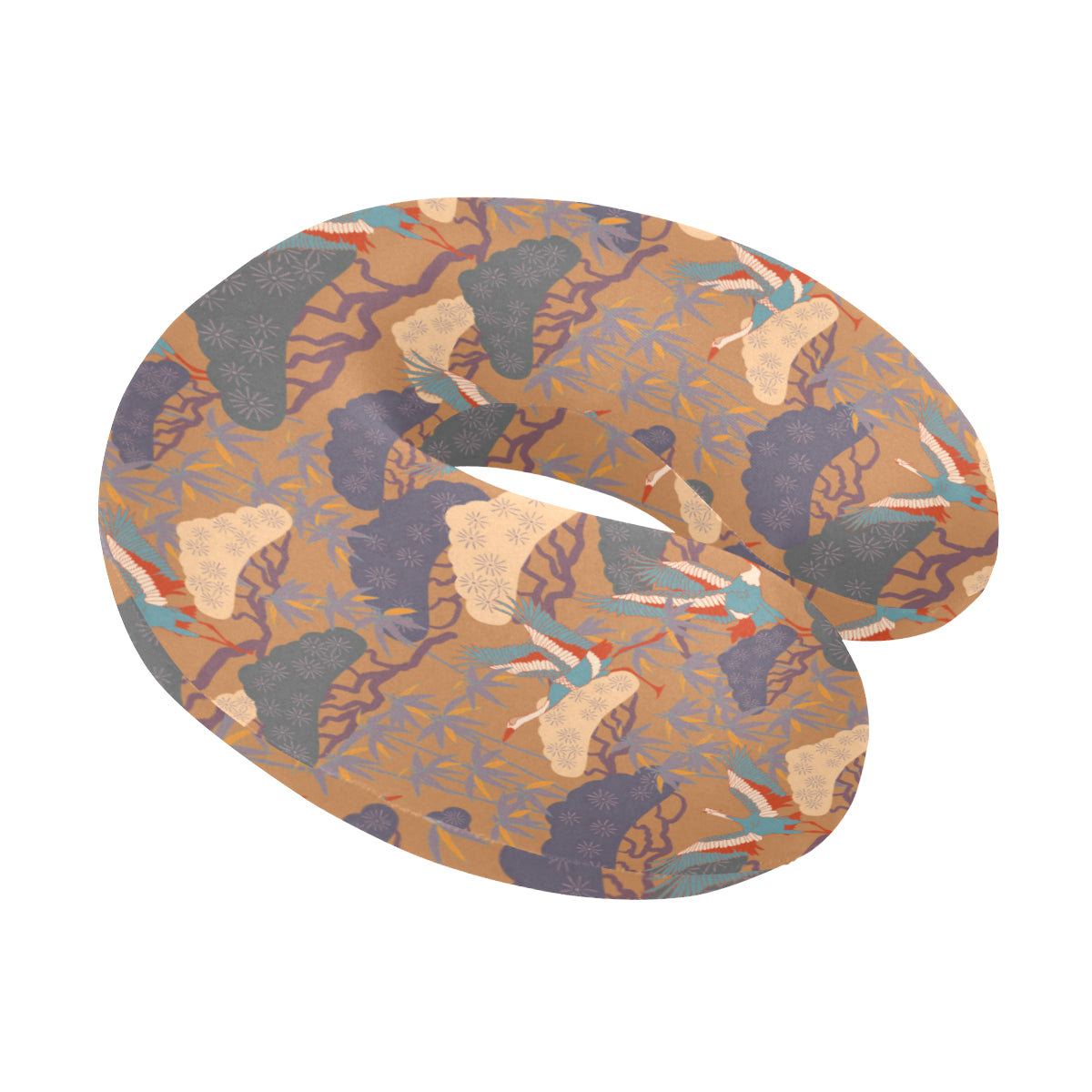 Bonsai bamboo stork japanese pattern brown theme U-Shaped Travel Neck Pillow