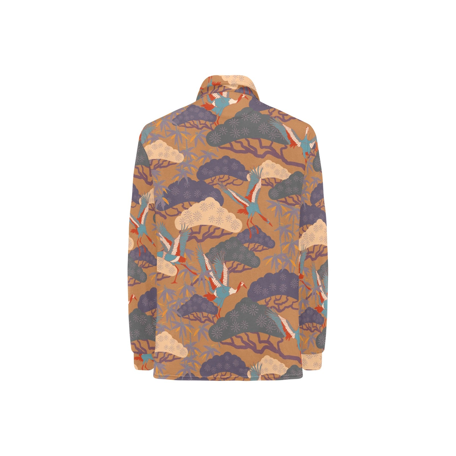 Bonsai bamboo stork japanese pattern brown theme Women's Long Sleeve Polo Shirt
