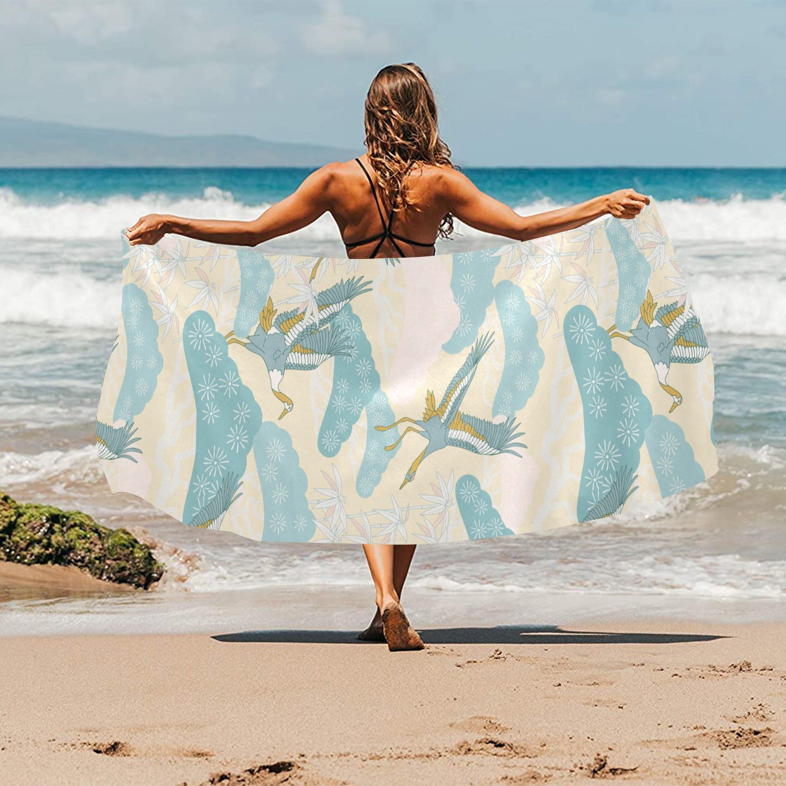 Bonsai bamboo stork japanese pattern cream theme Beach Towel