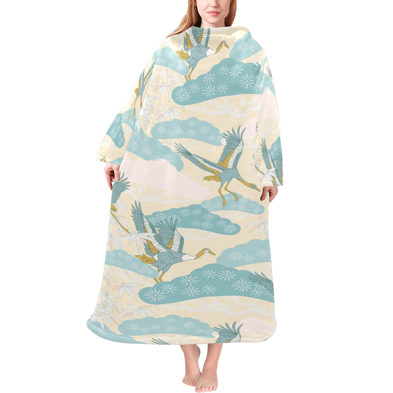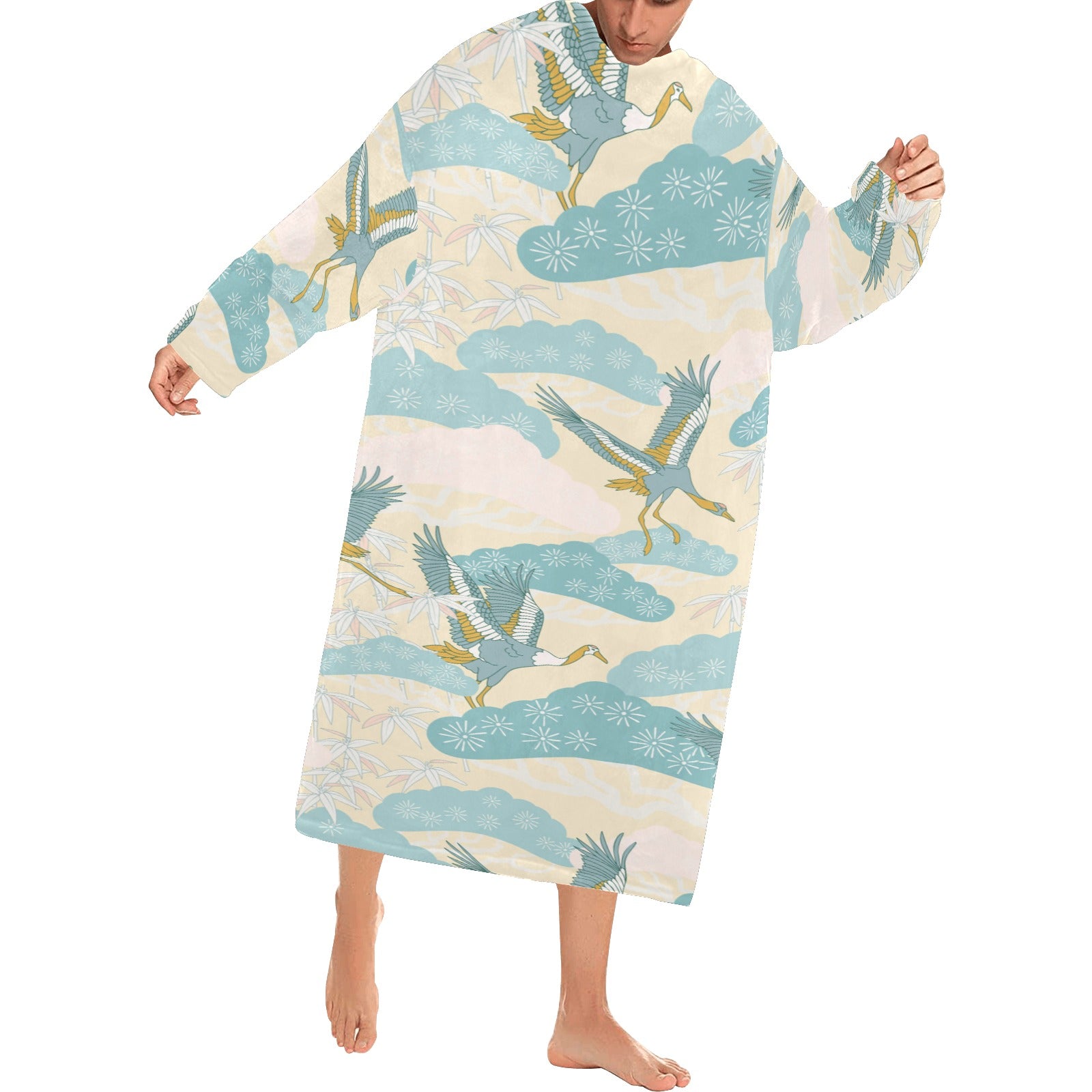 Bonsai bamboo stork japanese pattern cream theme Blanket Robe with Sleeves