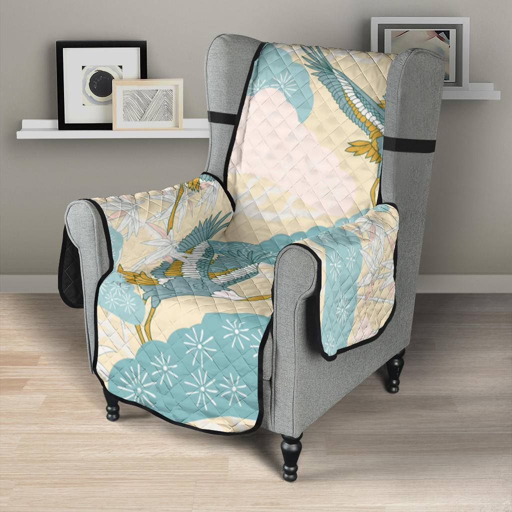 Bonsai bamboo stork japanese pattern cream theme Chair Cover Protector