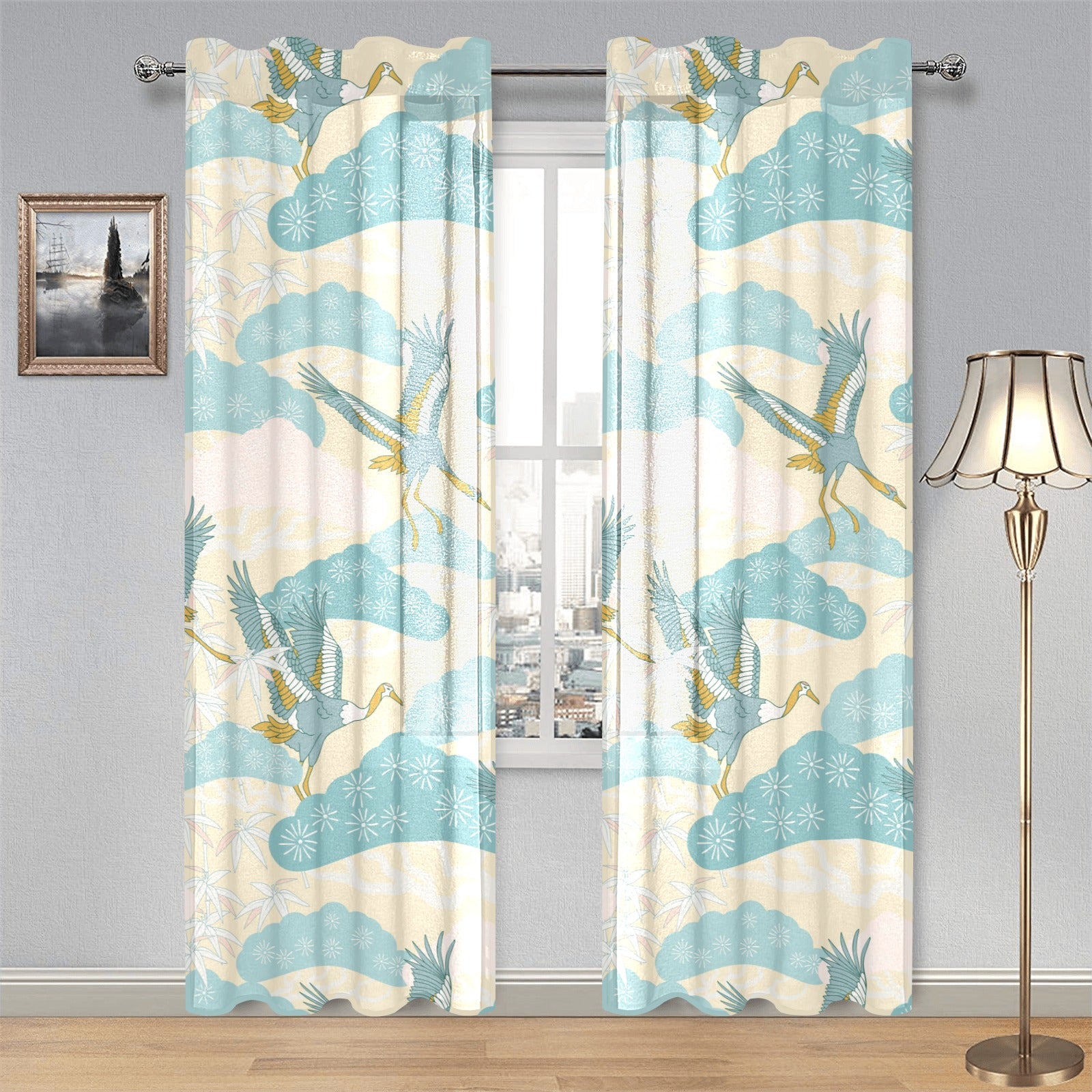 Bonsai bamboo stork japanese pattern cream theme Gauze Curtain